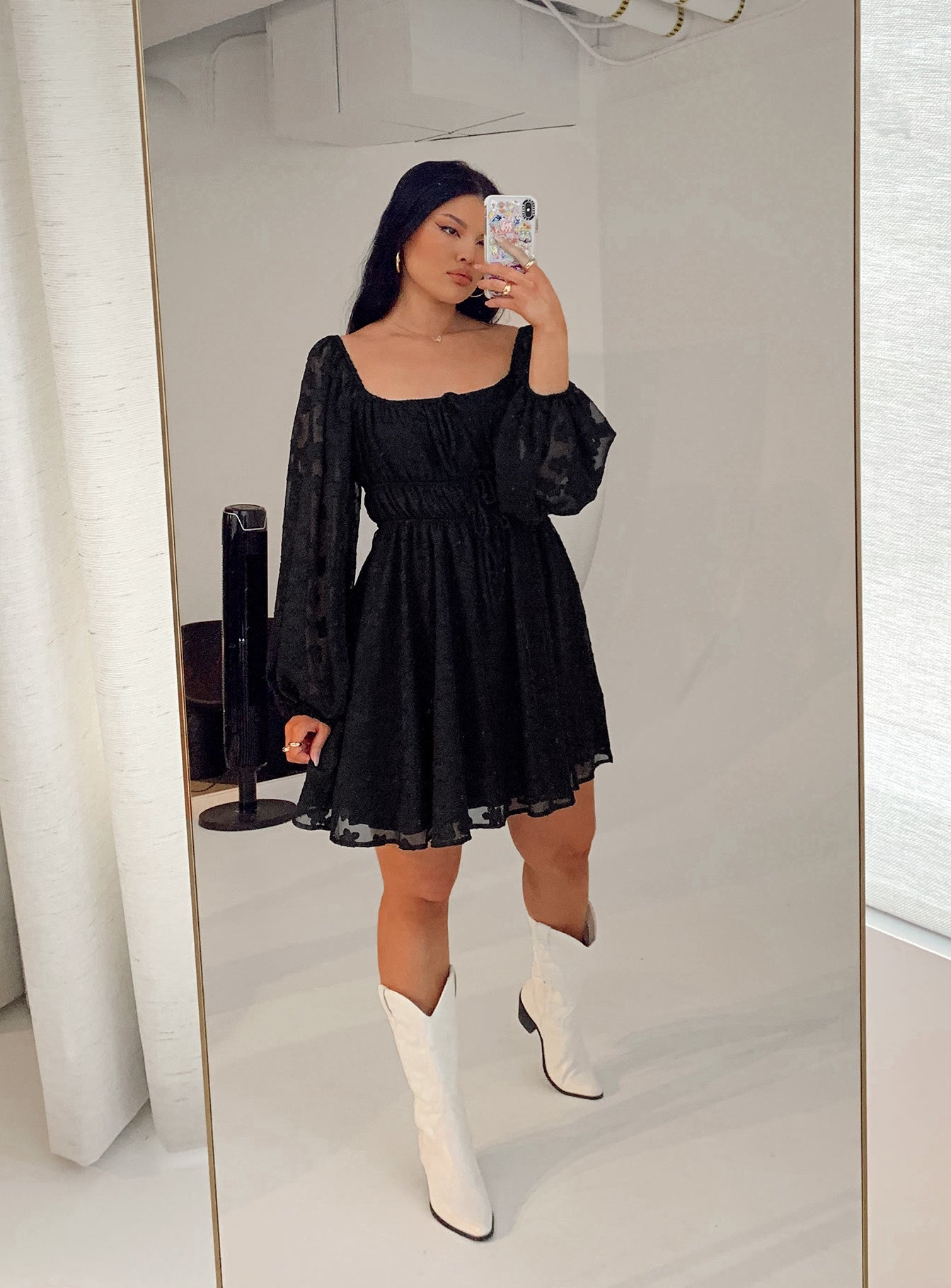 Alisha Long Sleeve Mini Dress Black