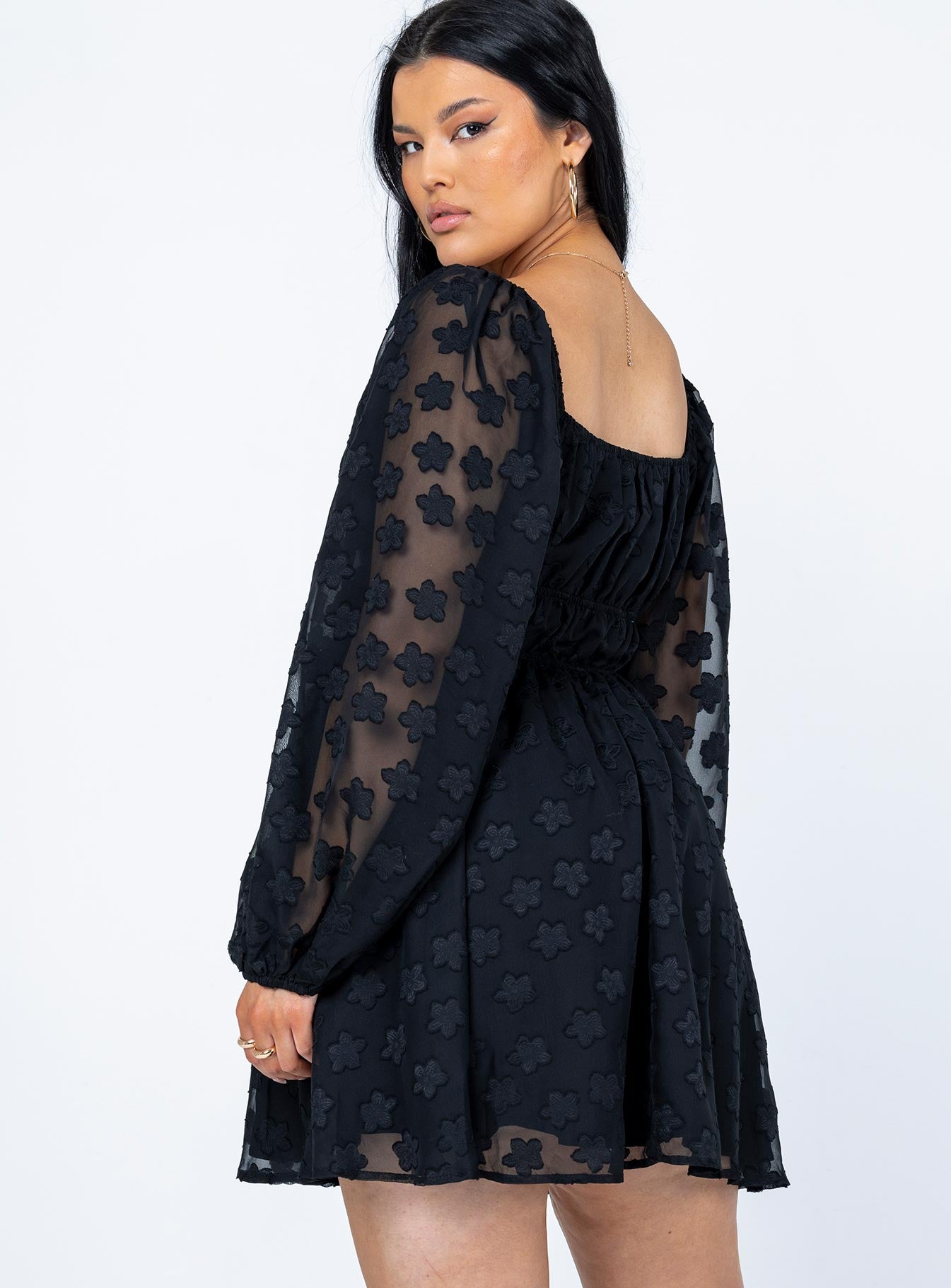 • Sheer long sleeves