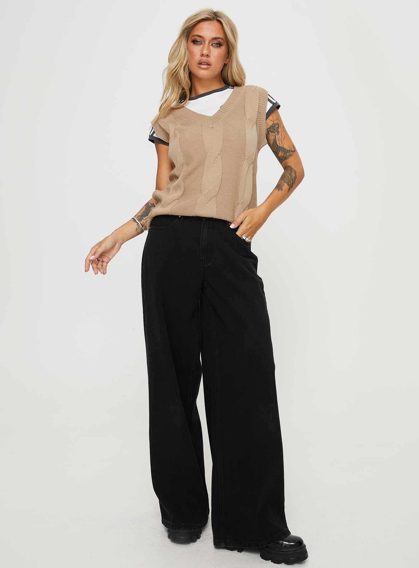 - Cable-knit vest