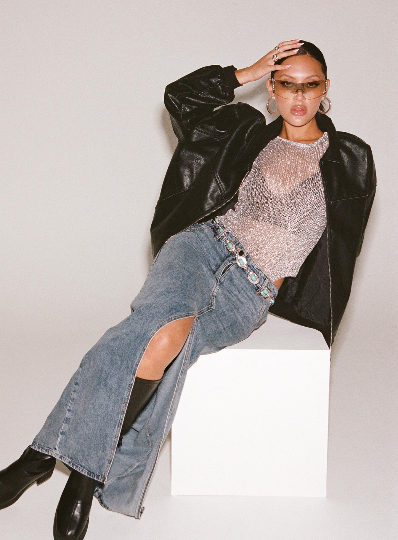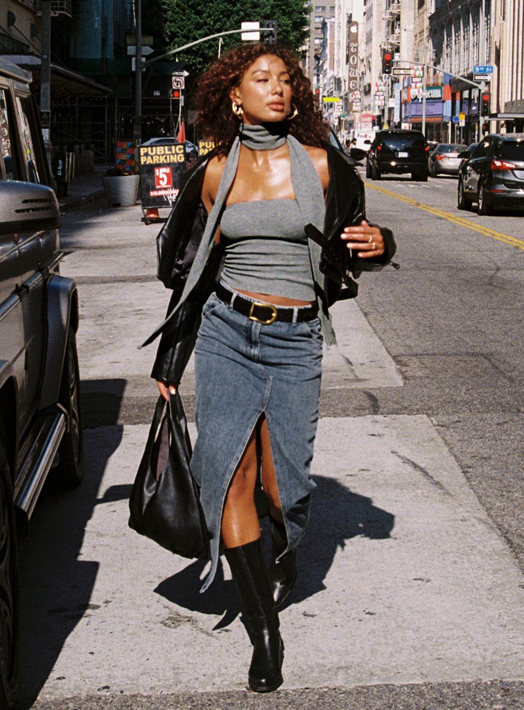 Be the first to review “Barbara Split Midi Skirt Faded Denim”