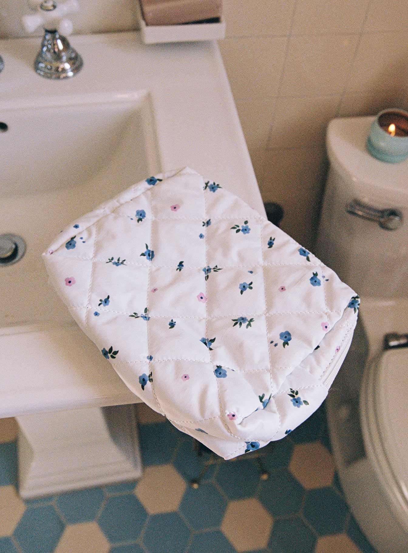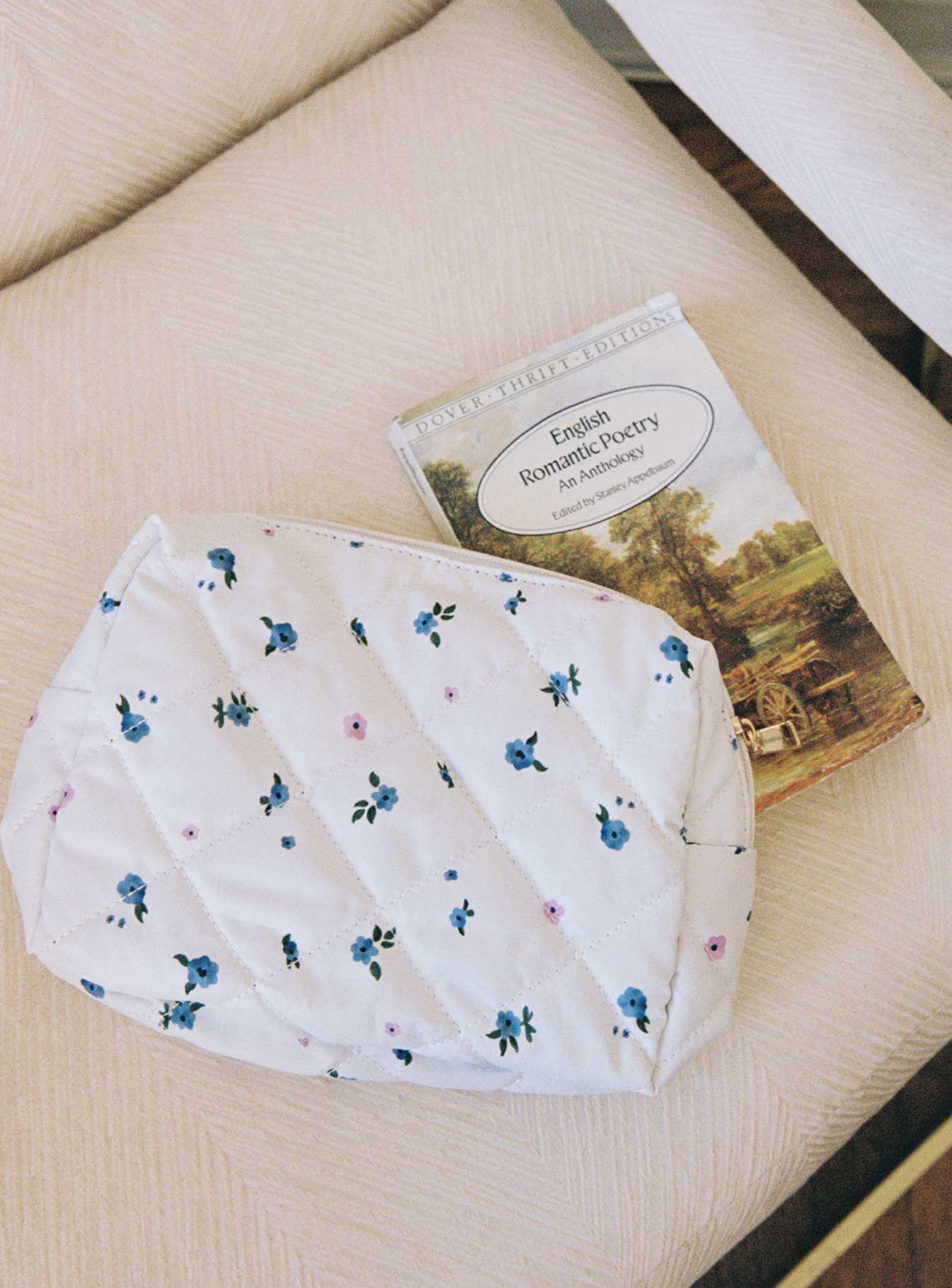 - Floral print cosmetic bag