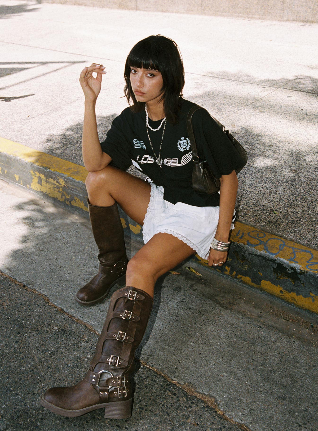• Lace-up detail at front. invisible zip fastening at back. tiered hem