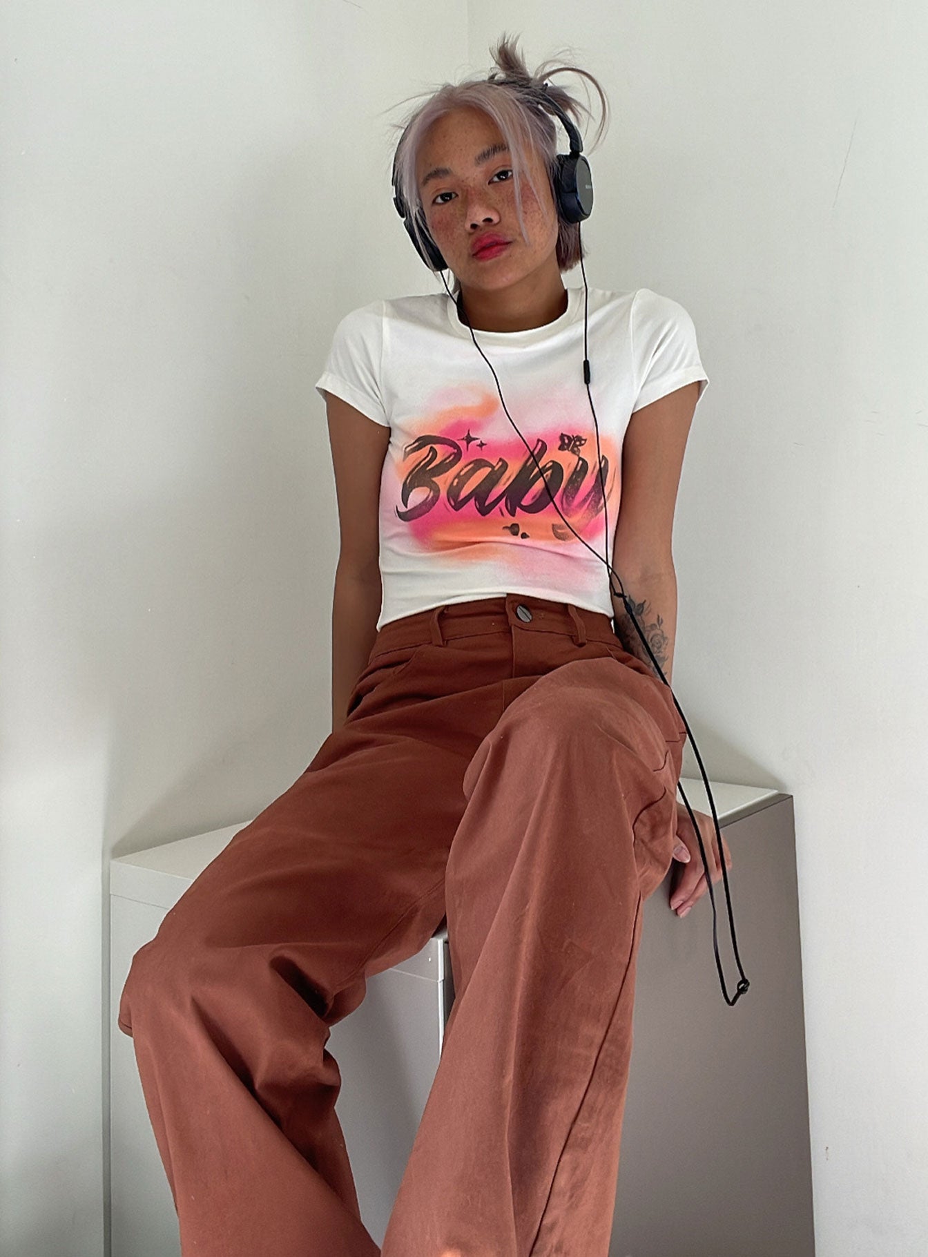 - Brown washed. belt looped waist. button & zip closure. five pockets