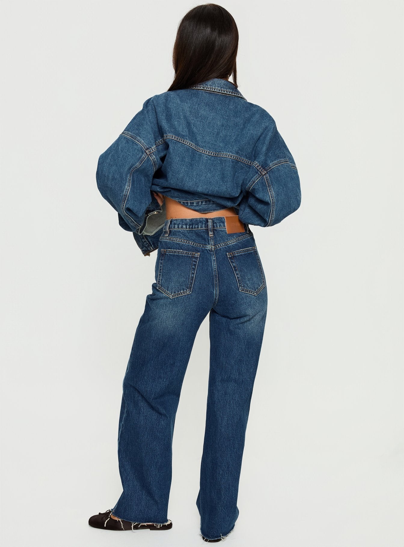 Fawcett High Rise Straight Leg Jeans Dark Blue Wash