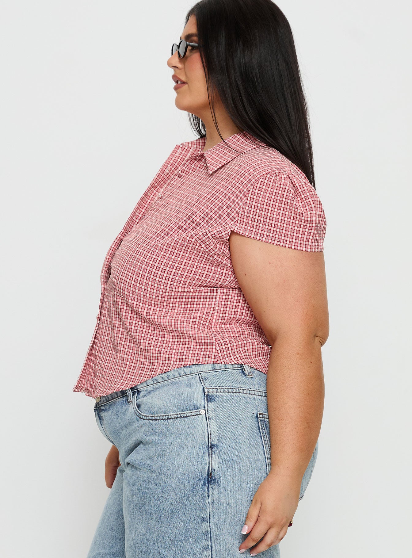 Be the first to review “Float Away Button Up Top Red Check Curve”