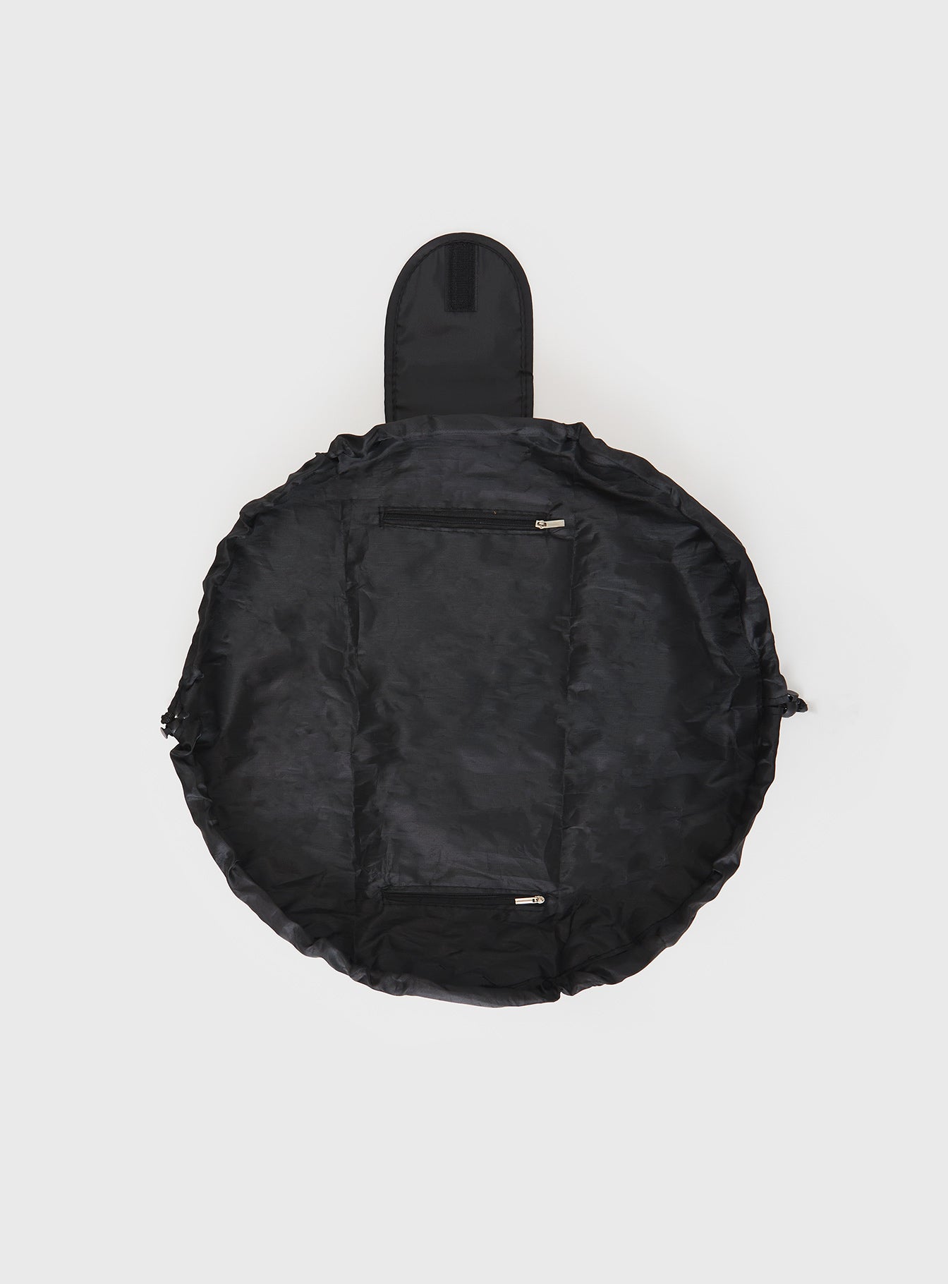 - Drawstring bag design. two inner pockets with zip fastenings. velcro flap fastening