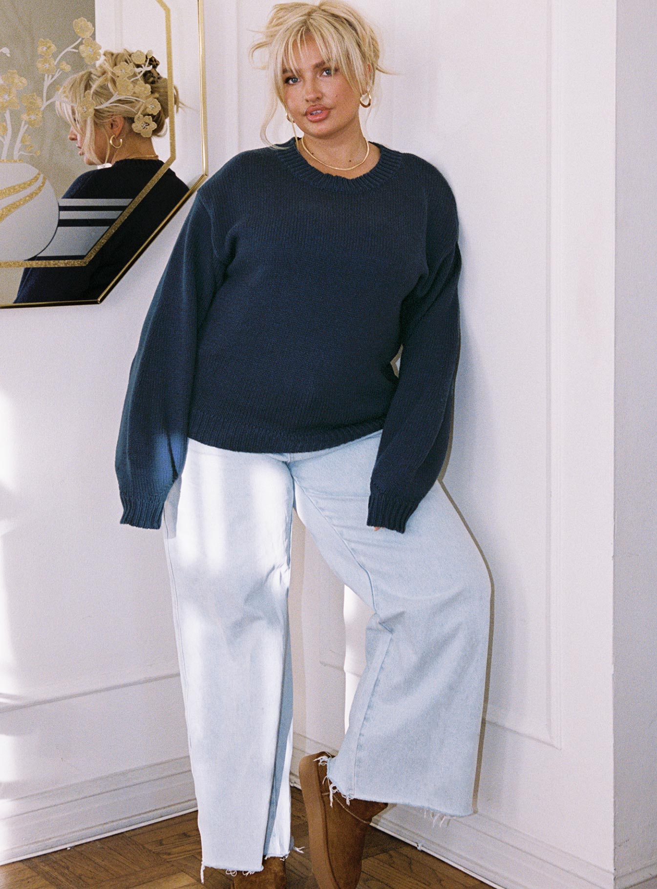 Harmony Balloon Sleeve Knit Sweater Navy Curve