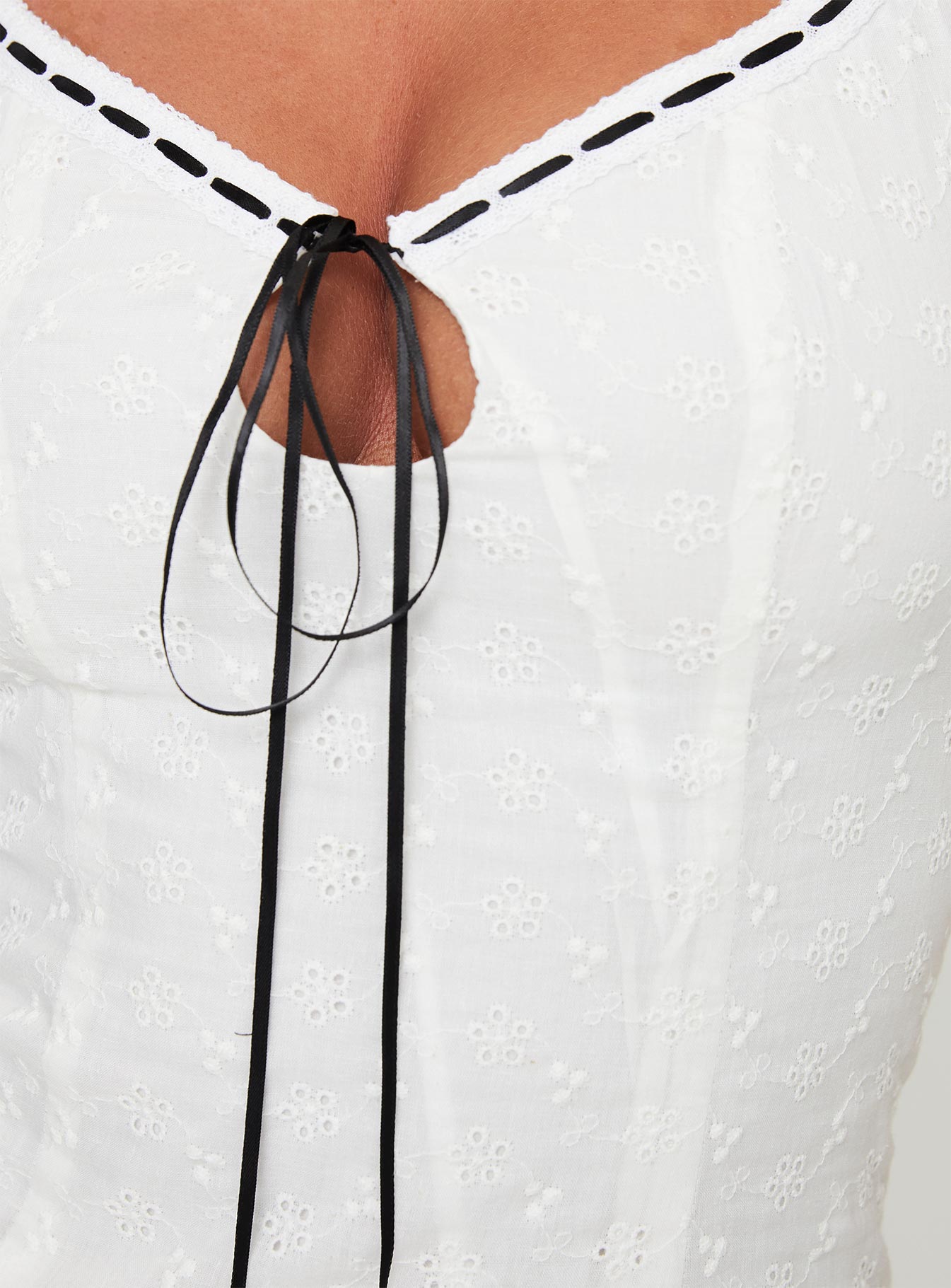 • Fixed shoulder straps. v-neckline. ribbon detail. inviisble zip fastening at back