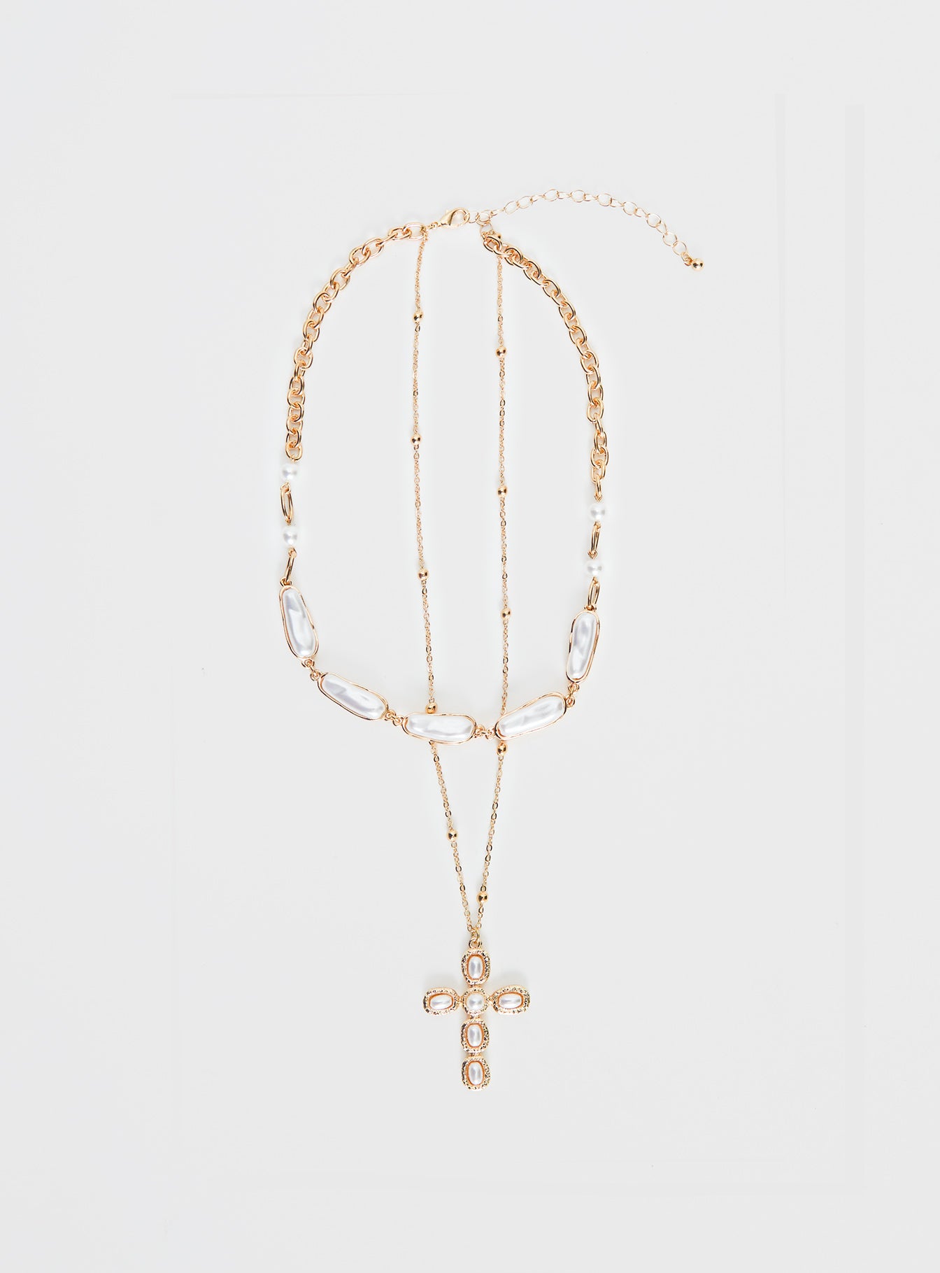 - Gold-tone hardware. layered. cross detail. lobster clasp fastening. adjustable length. fixed chain