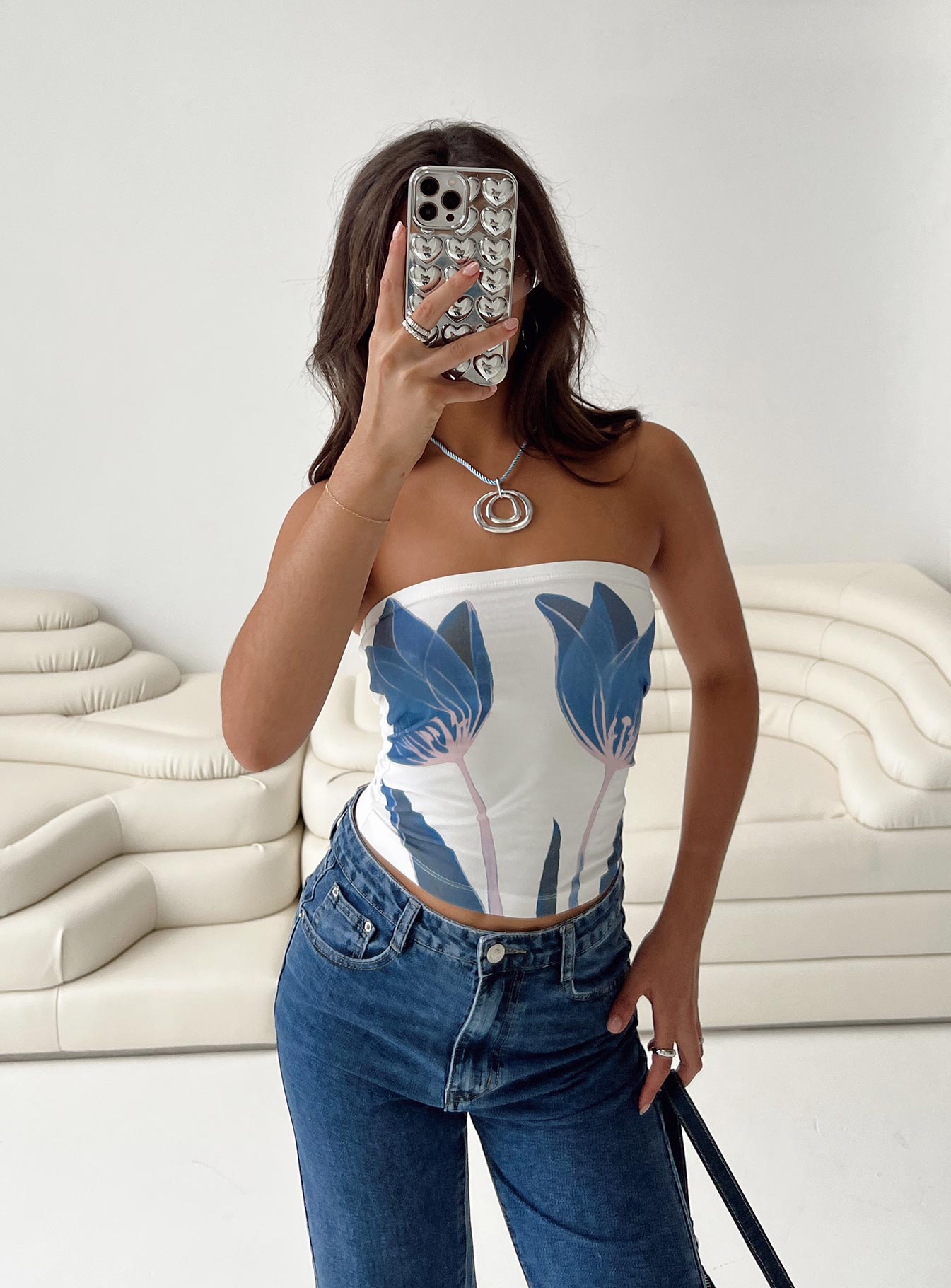 Jasmyne Tube Top White / Blue Floral