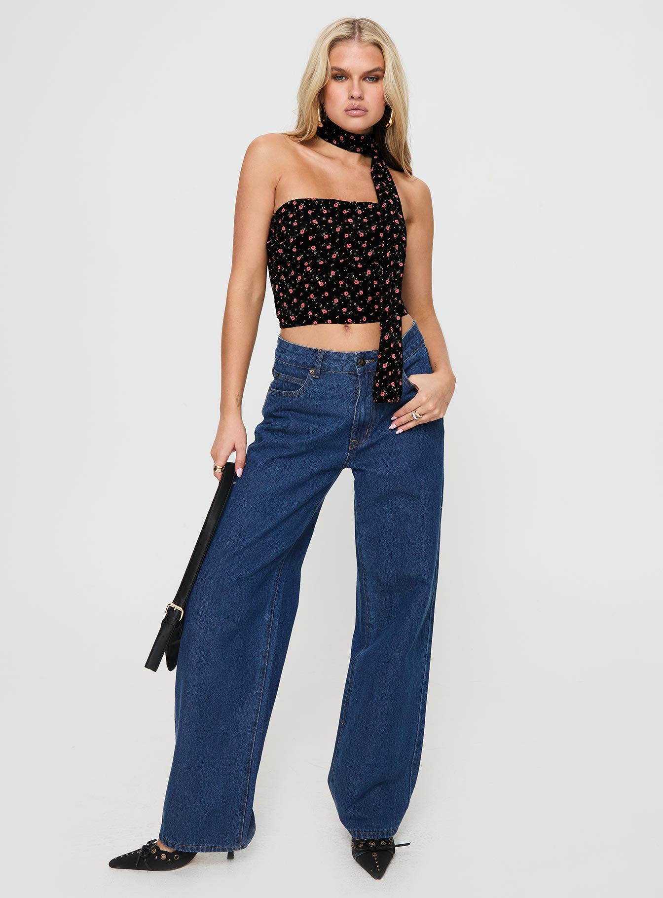 Jontie Two-piece Scarf Top Black Floral