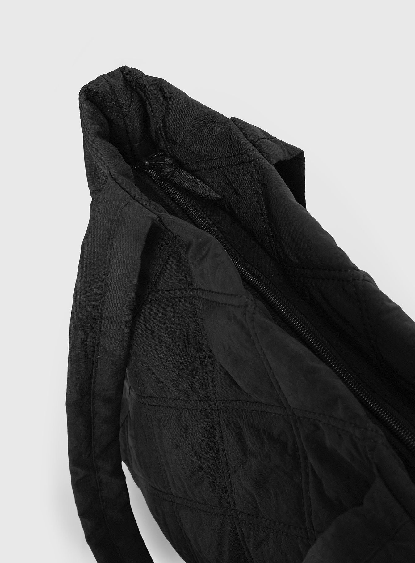 - Contrast stitching detail. quilted material. twin handles. zip fastening. three internal pockets. flat base?