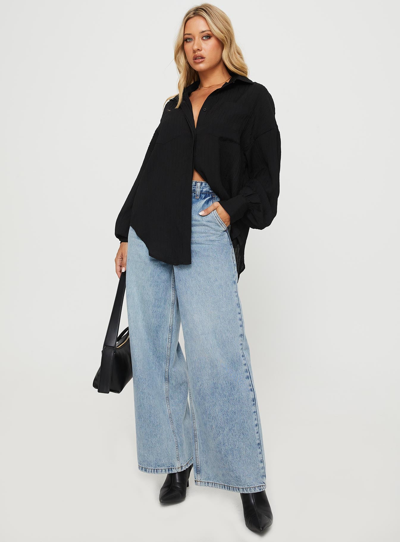 • Relaxed fit. classic collar. drop shoulder. twin chest pockets. button-down fastening at front