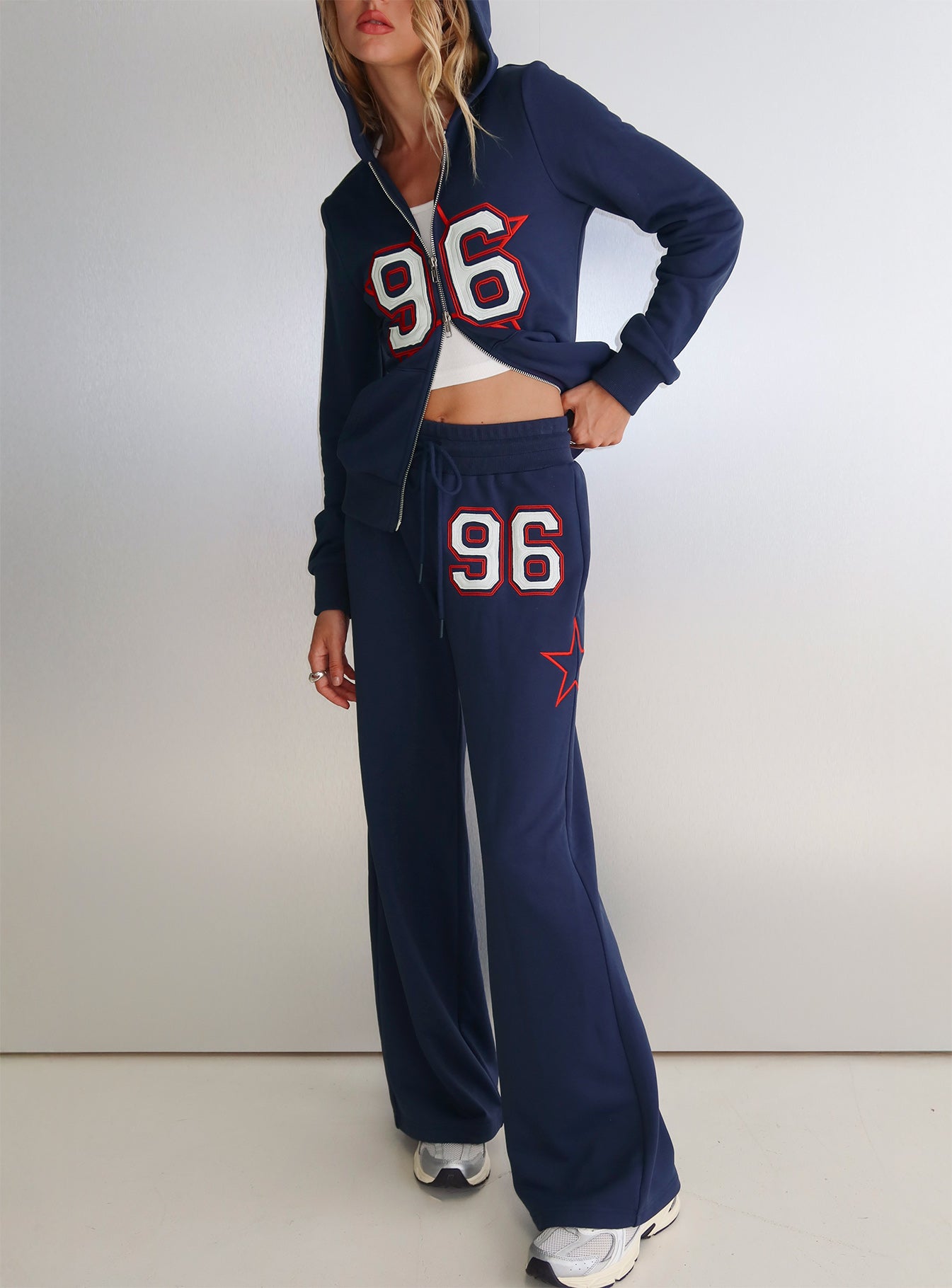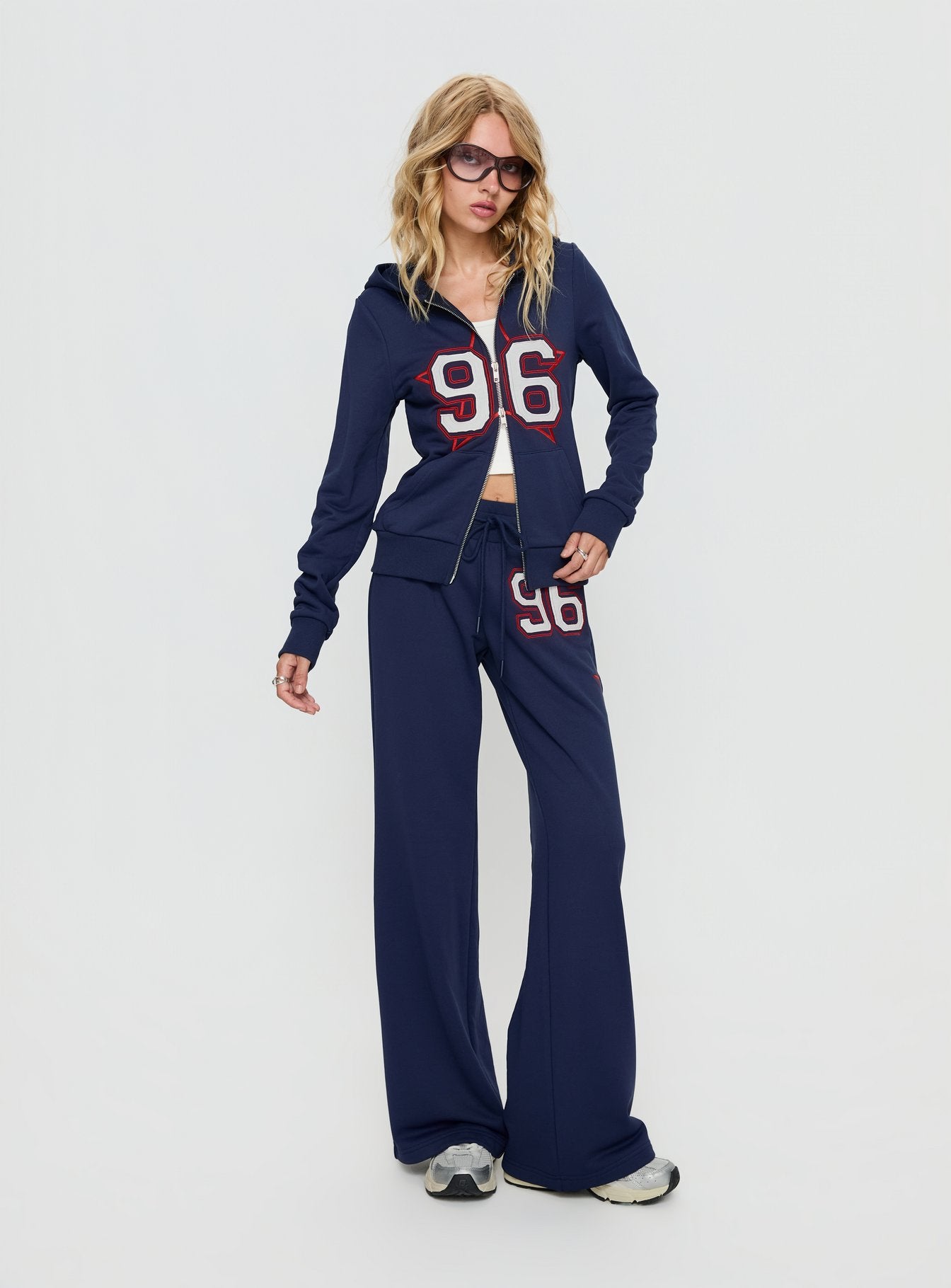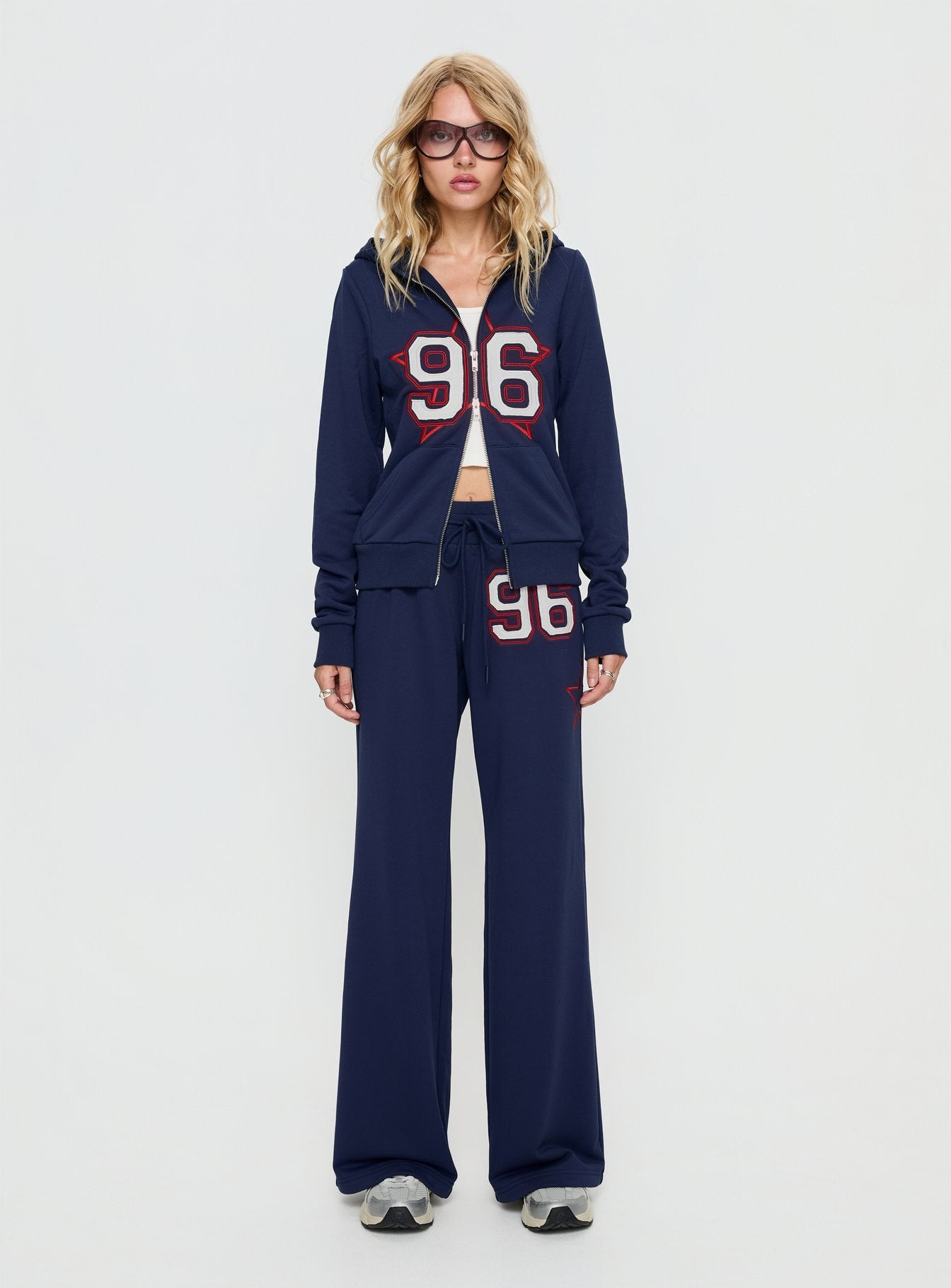- Track pants with distressed detail & mid-rise fit?