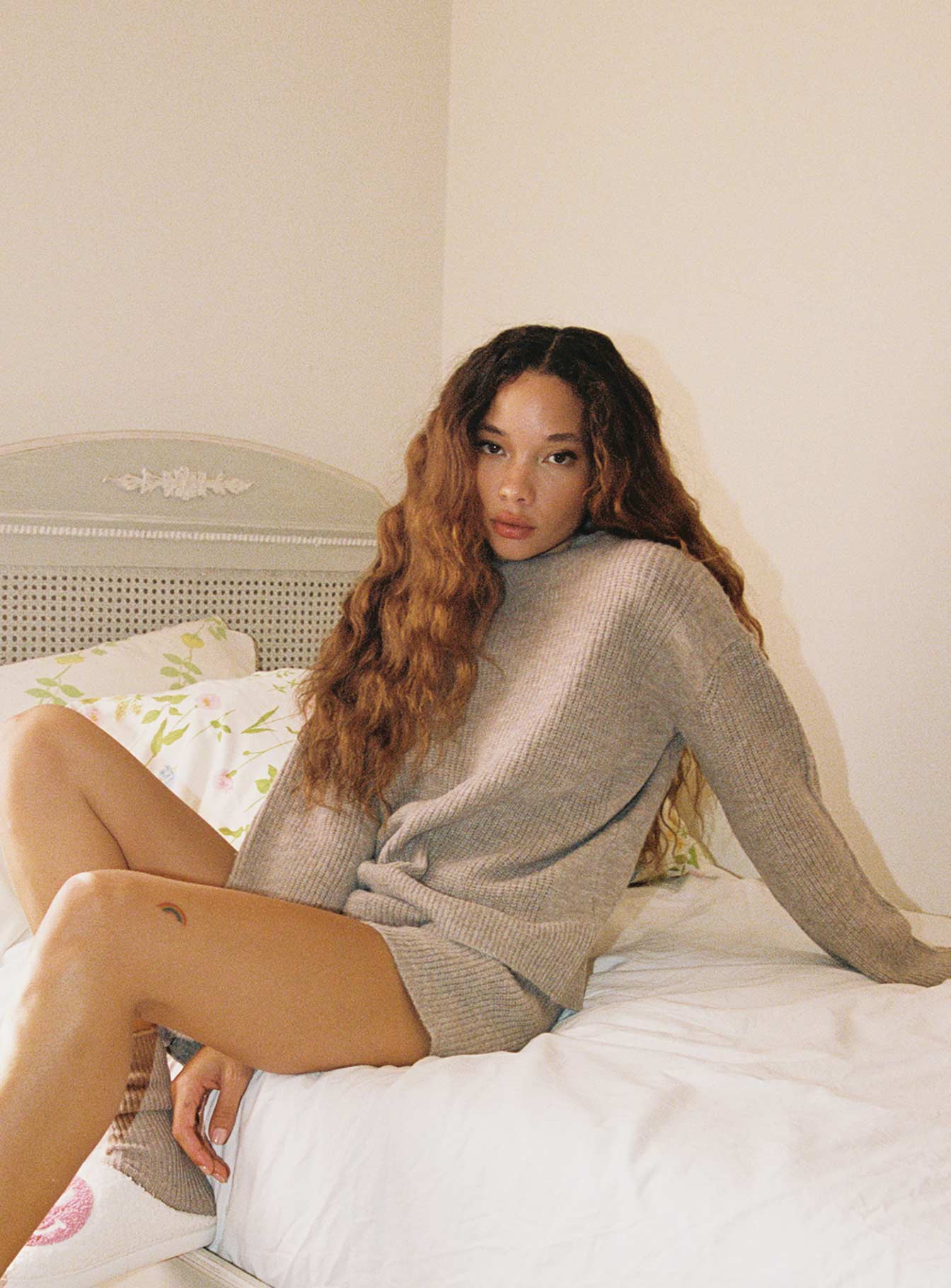 - Ribbed-knit material. mock neck. long sleeves. relaxed style