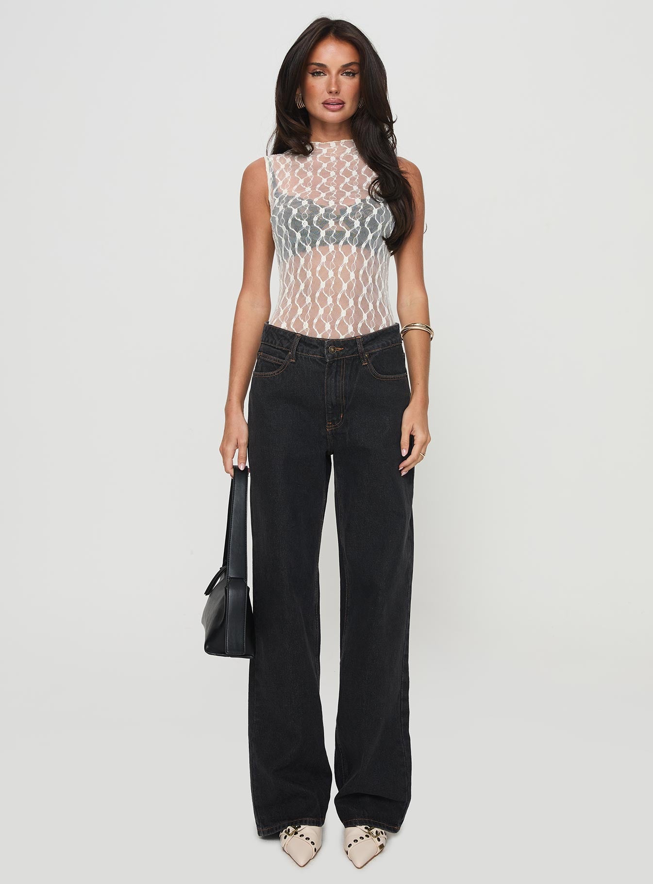 - Mock neckline. press clip closure at base. cheeky bottoms. sheer