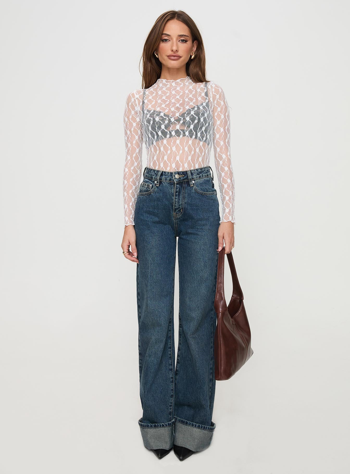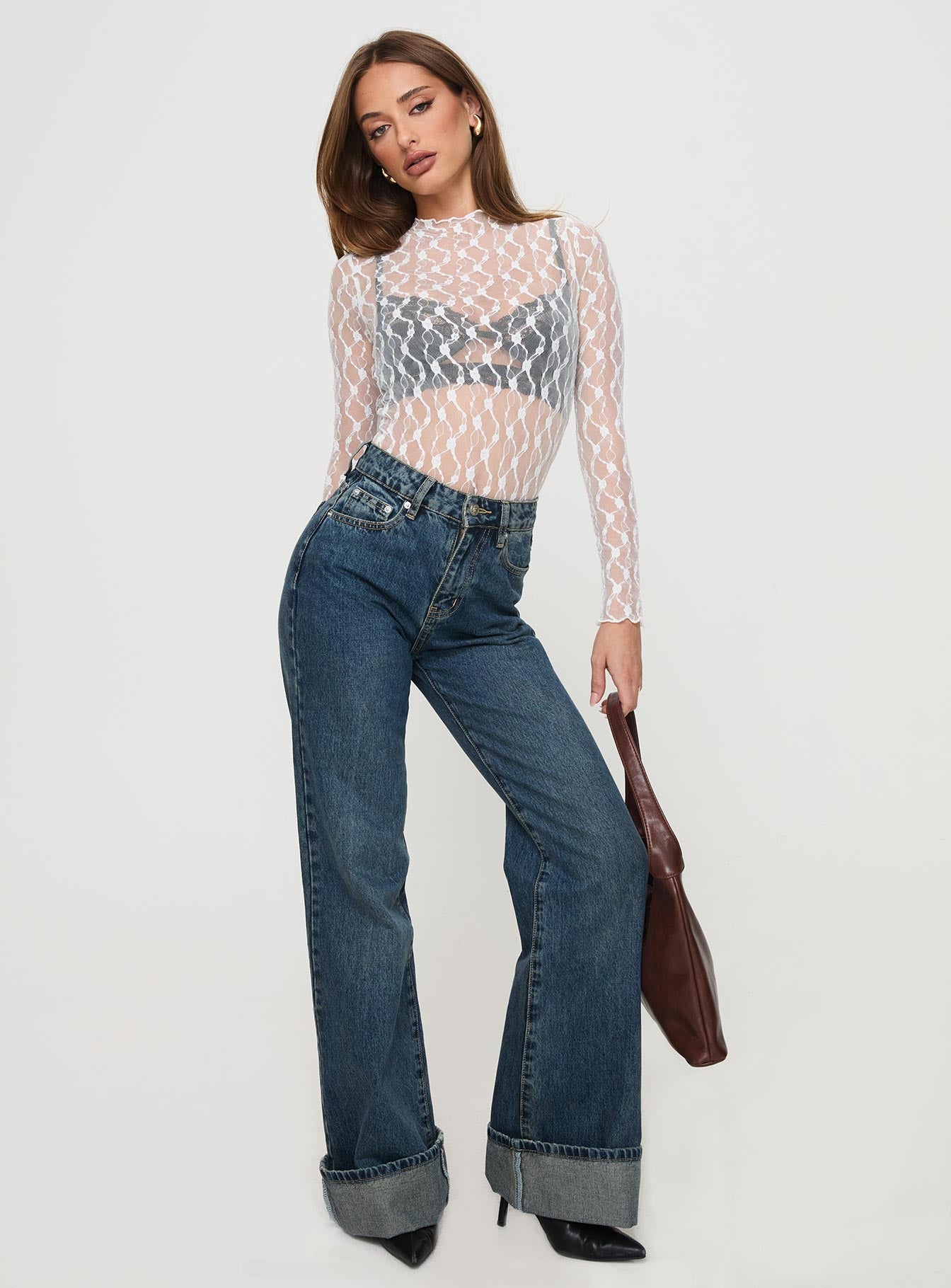 - Lace long sleeve bodysuit