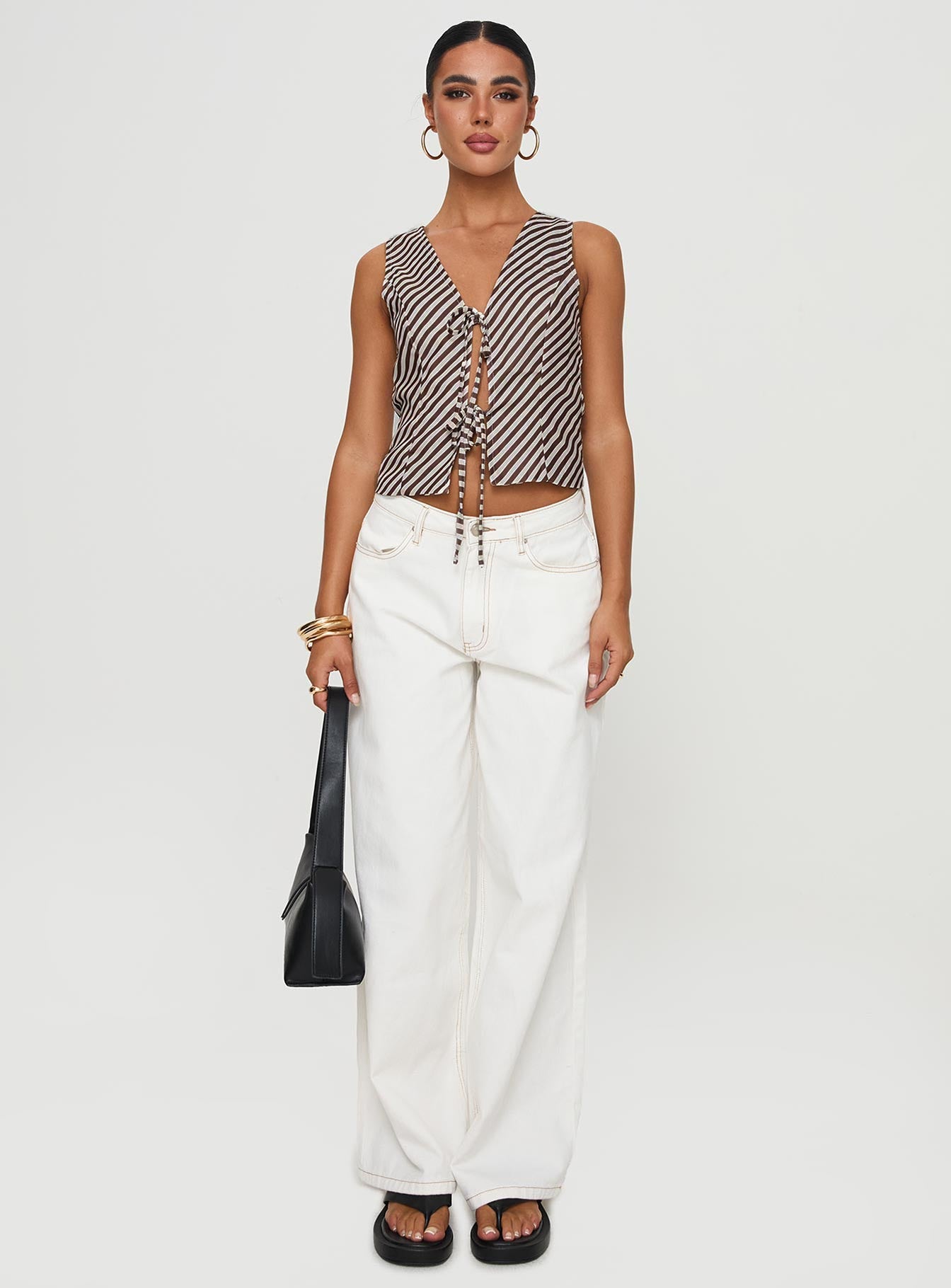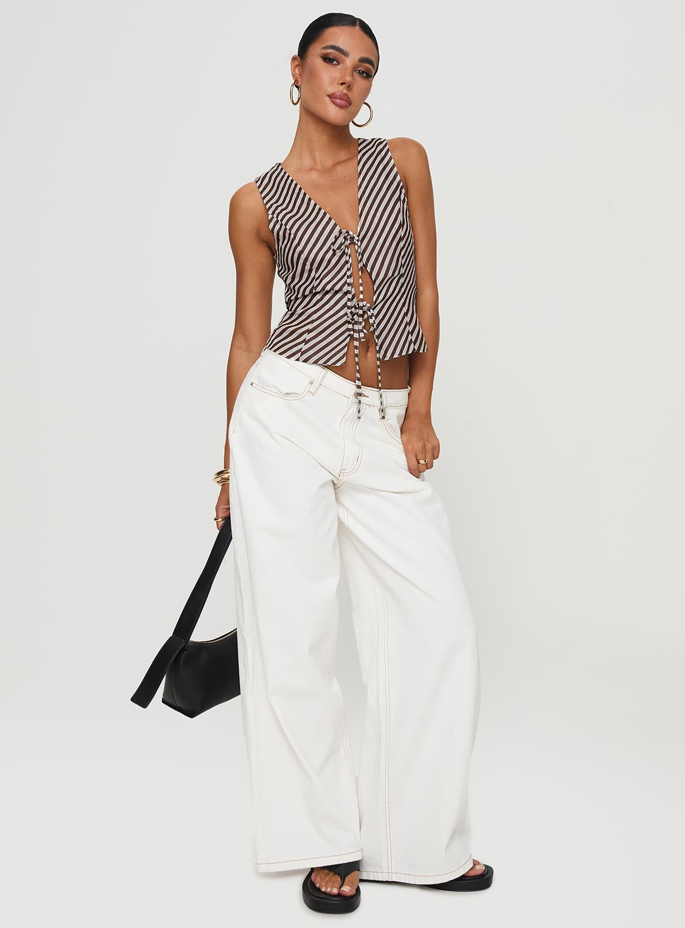 - Striped print. v neckline. twin tie fastening at bust. split hem