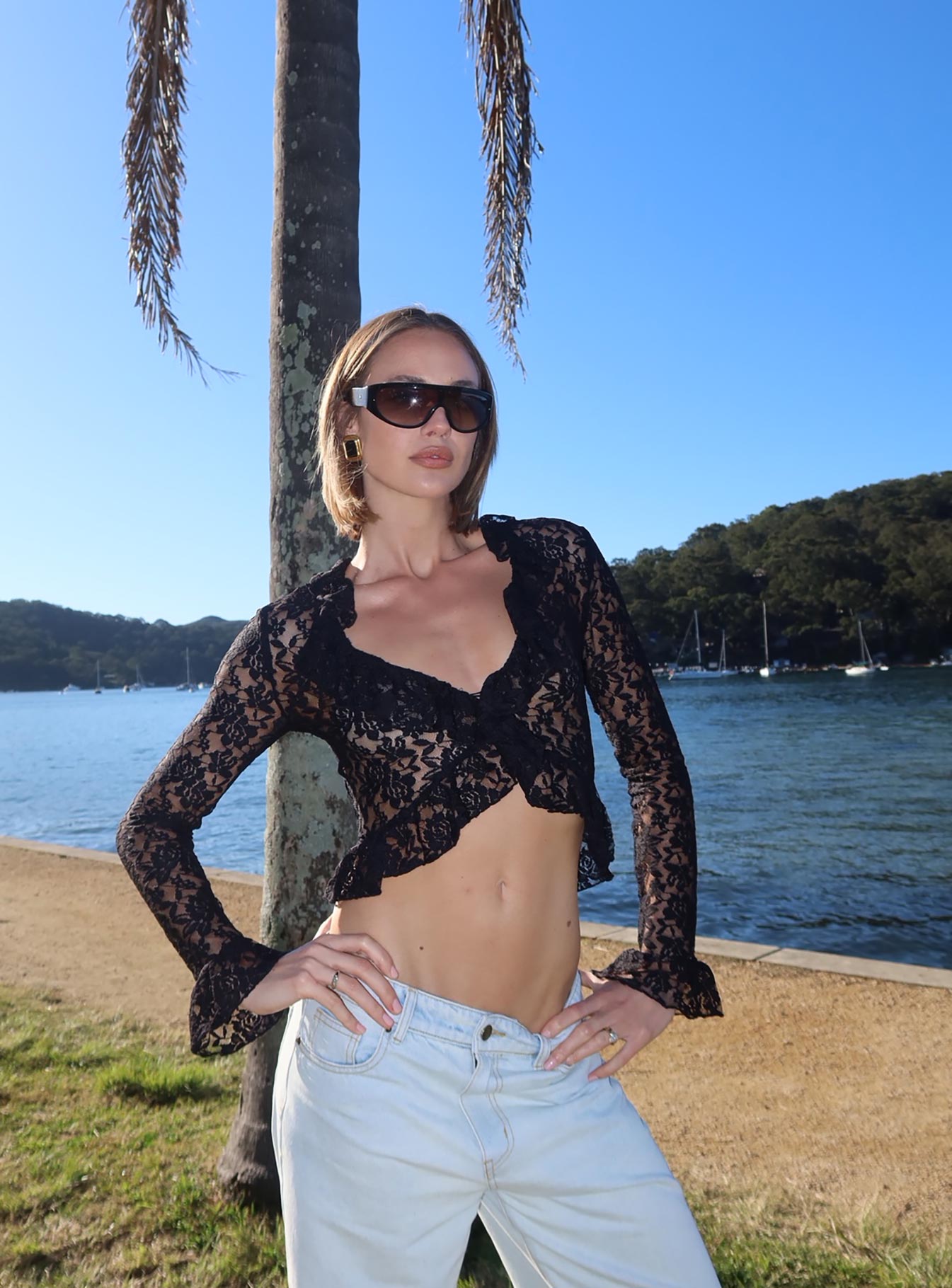 - Frill detail. v-neck. asymmetrical. crop. sheer?