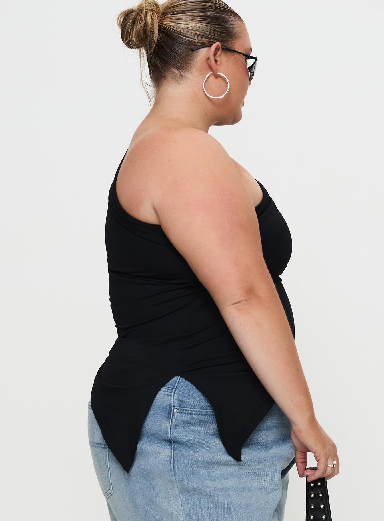 Lunah One Shoulder Top Black Curve