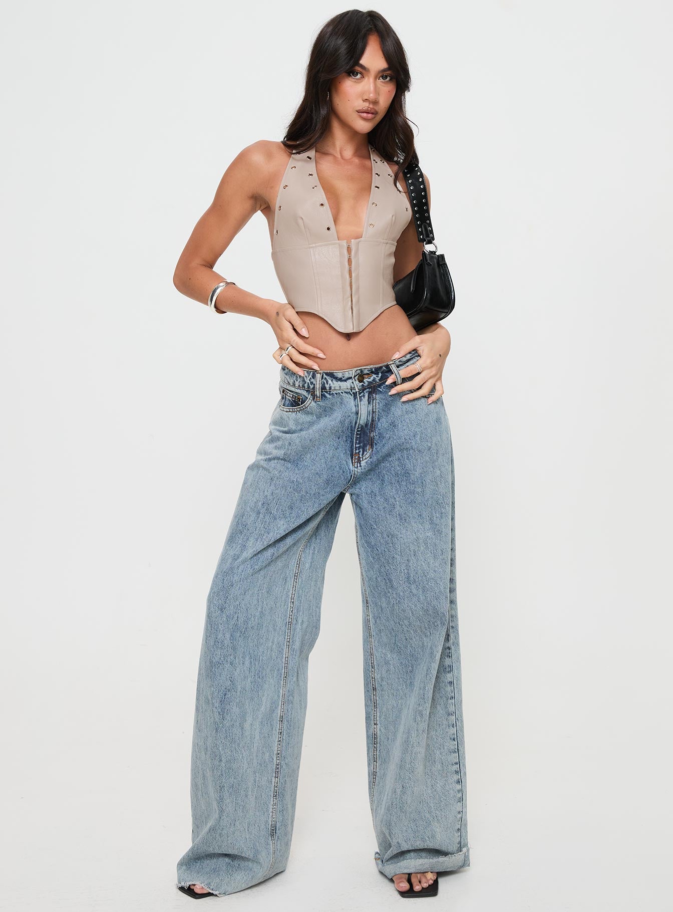 - Halterneck. v neckline. boning structure. hook & eye fastening at front