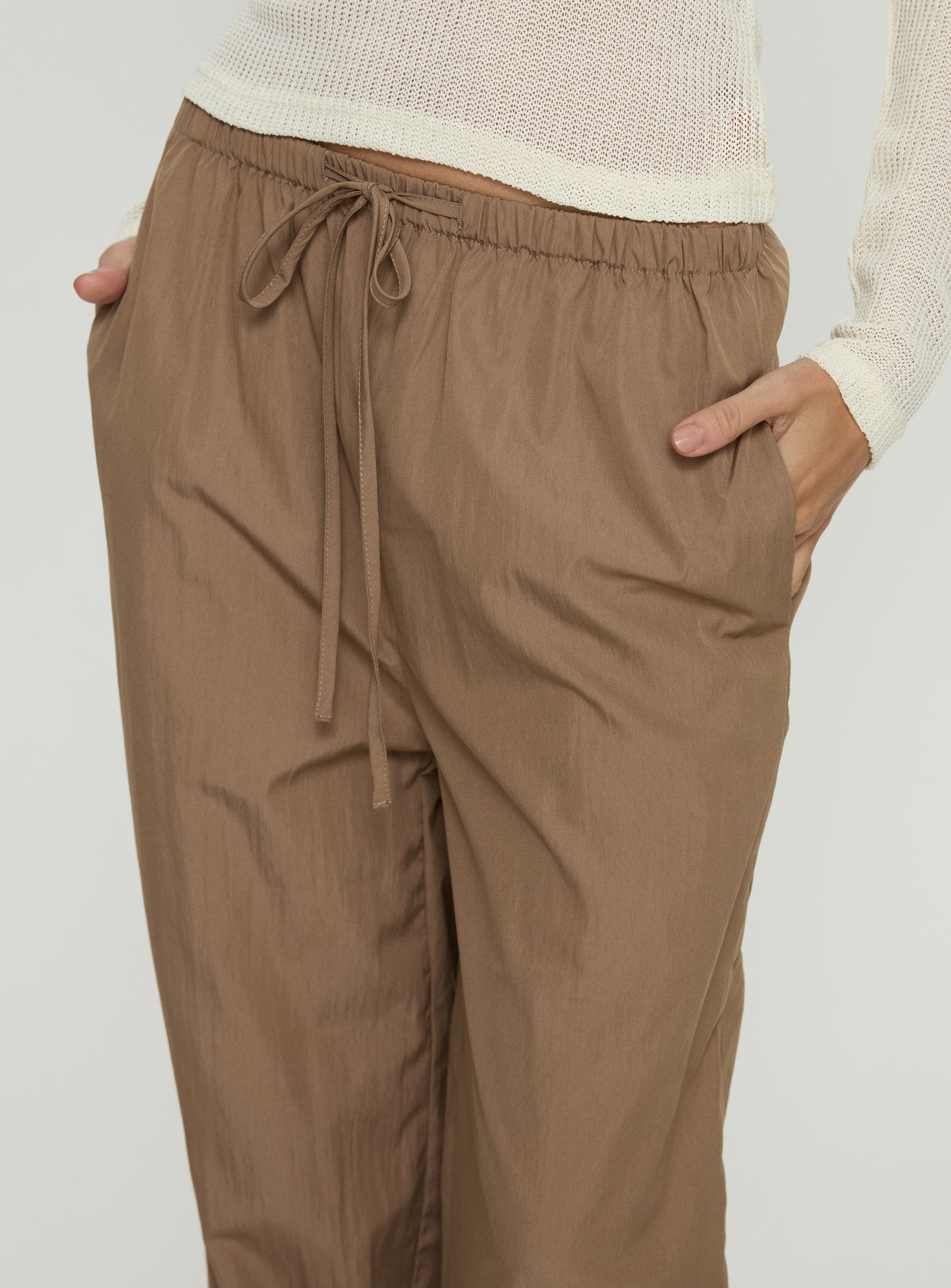 • Elasticated. soft pleats. twin hip pockets. mid-rise fit?