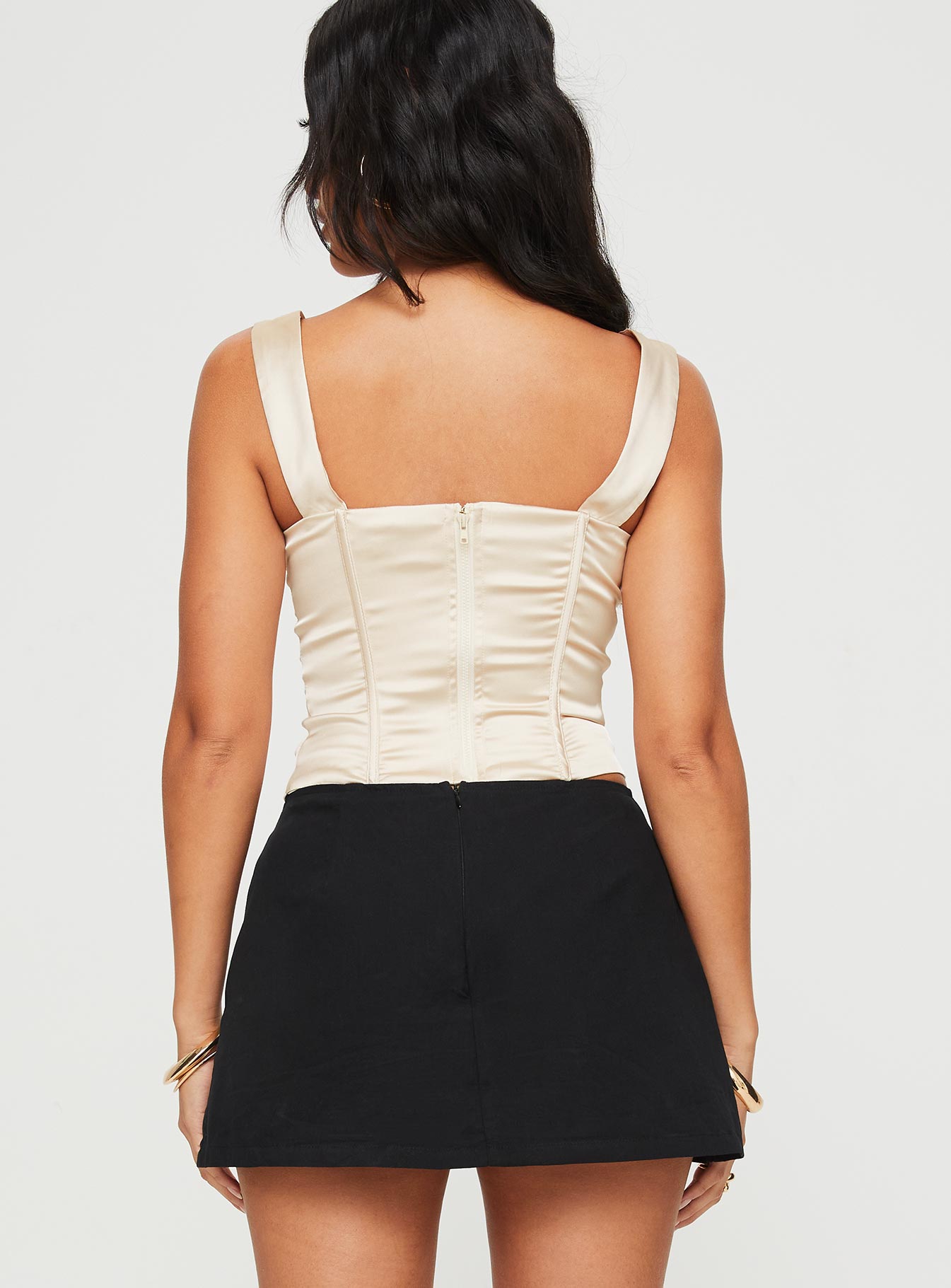 - Fixed shoulder straps. boning through waist. zip fastening at back