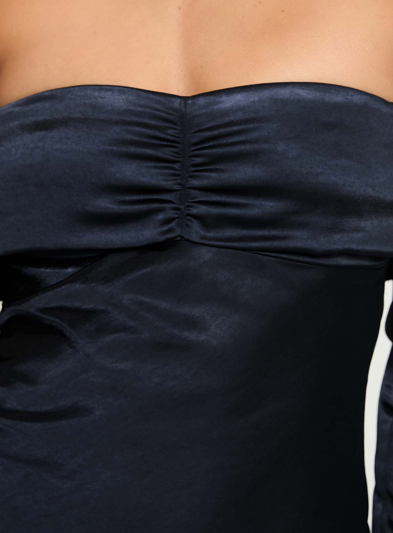- Ruched bust. invisible zipper on side. elasticated shoulders