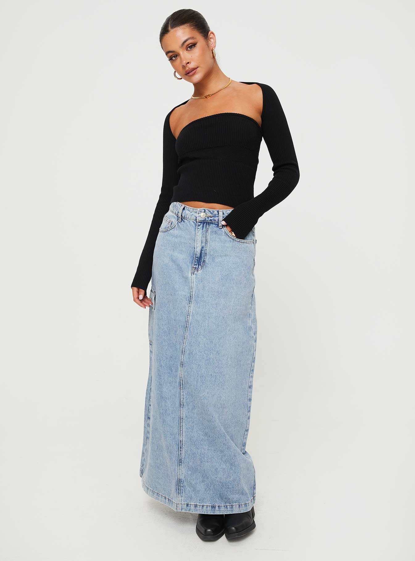 - Two-piece top. slim fitting. knit material. strapless tube top. matching long sleeve bolero