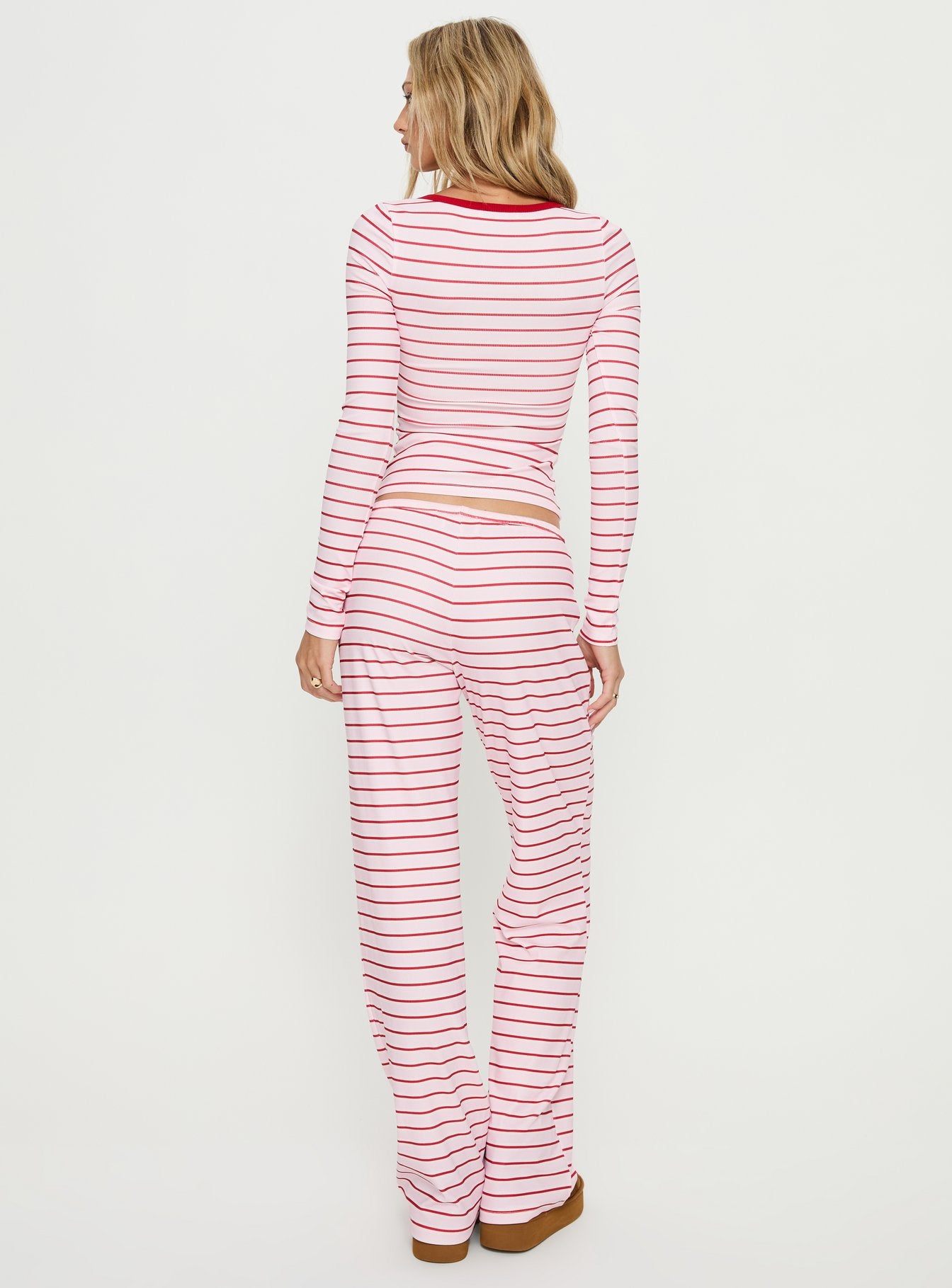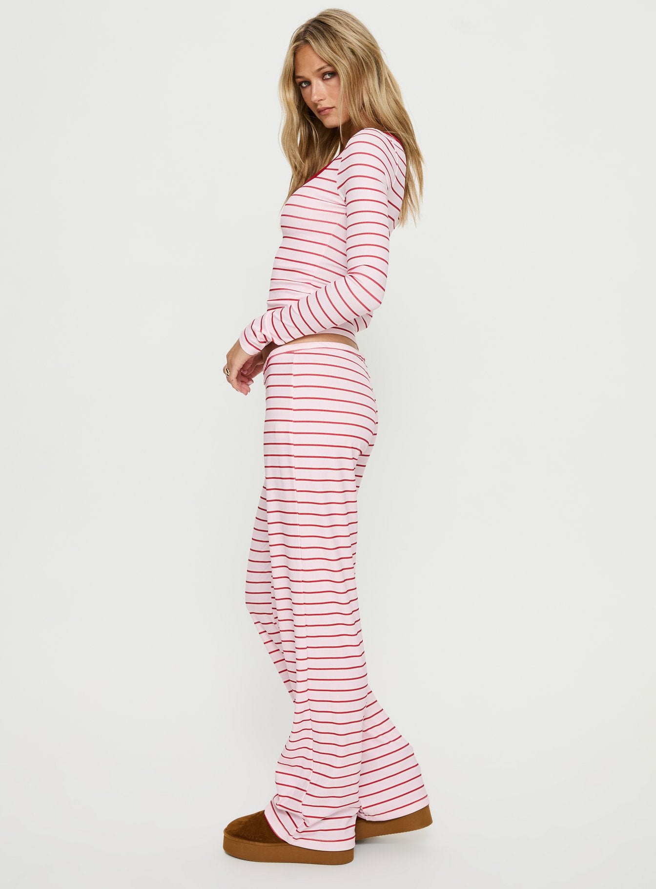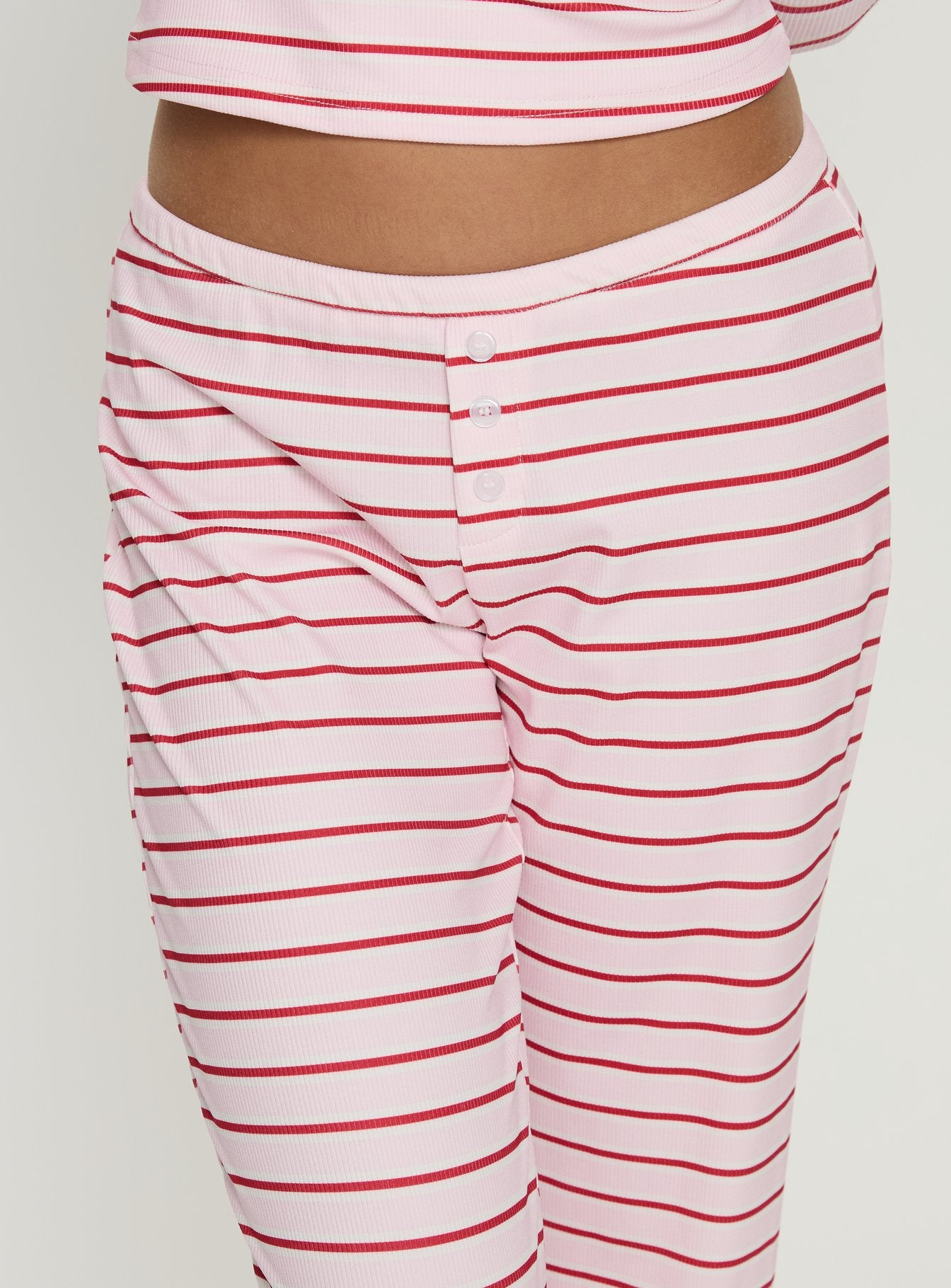 - Sleep rib pants in stripe print with a mid-rise fit?