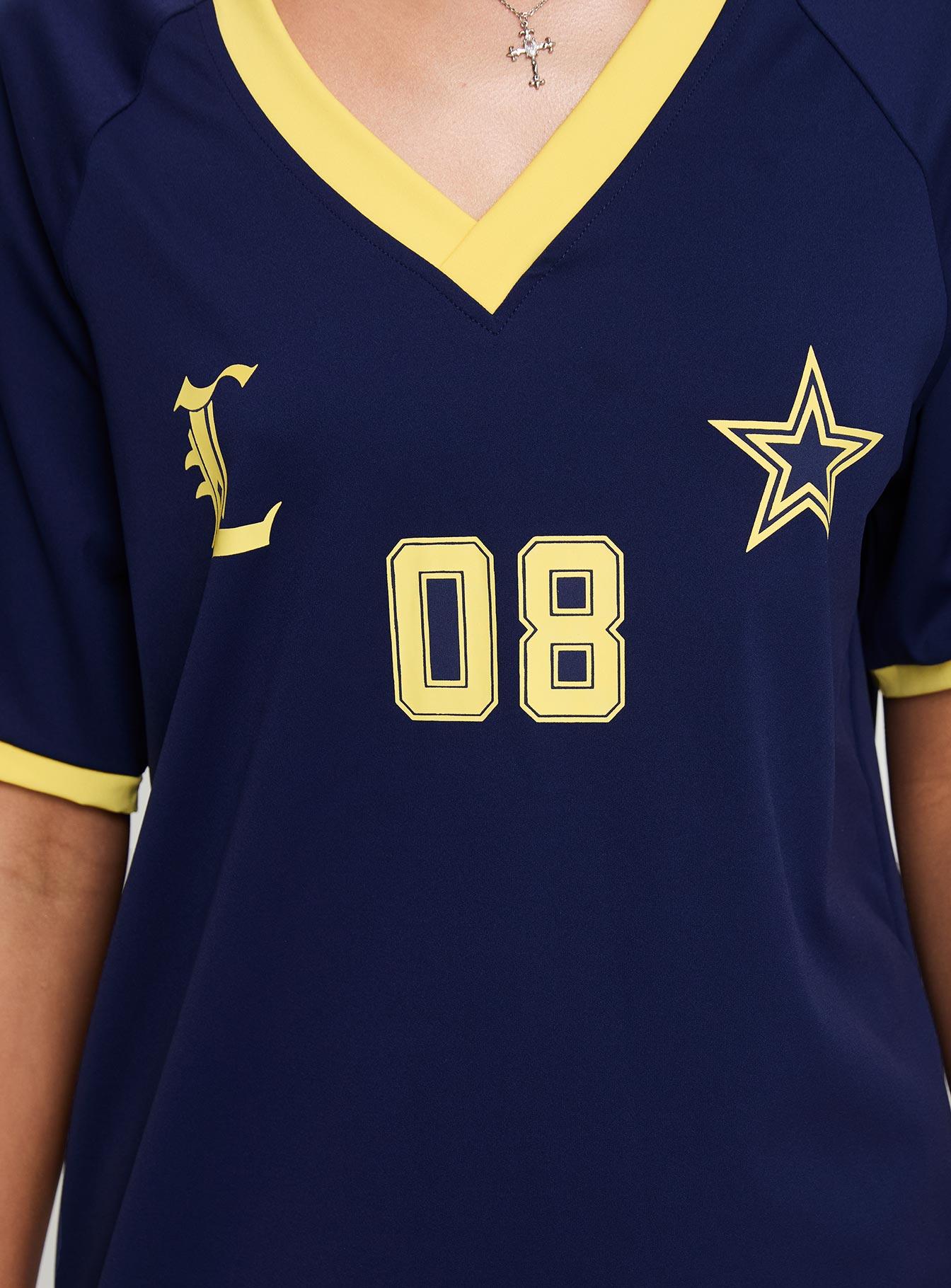 - Contrast trim detail. v-neckline. drop shoulders. loose fit?