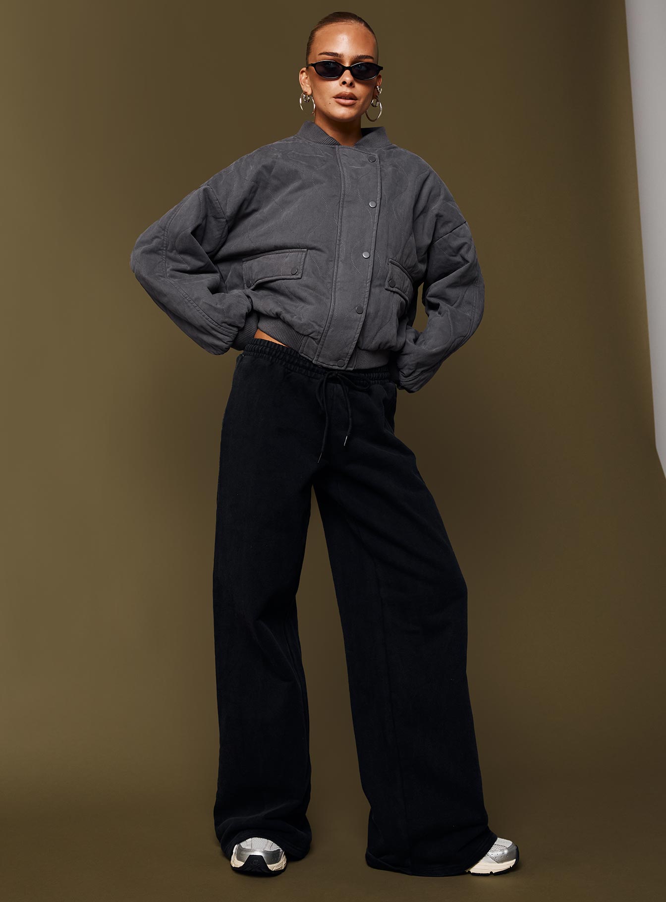 - Ribbed hem detail. button & zip closure. twin front pockets. balloon sleeves. drop shoulders. cuffed