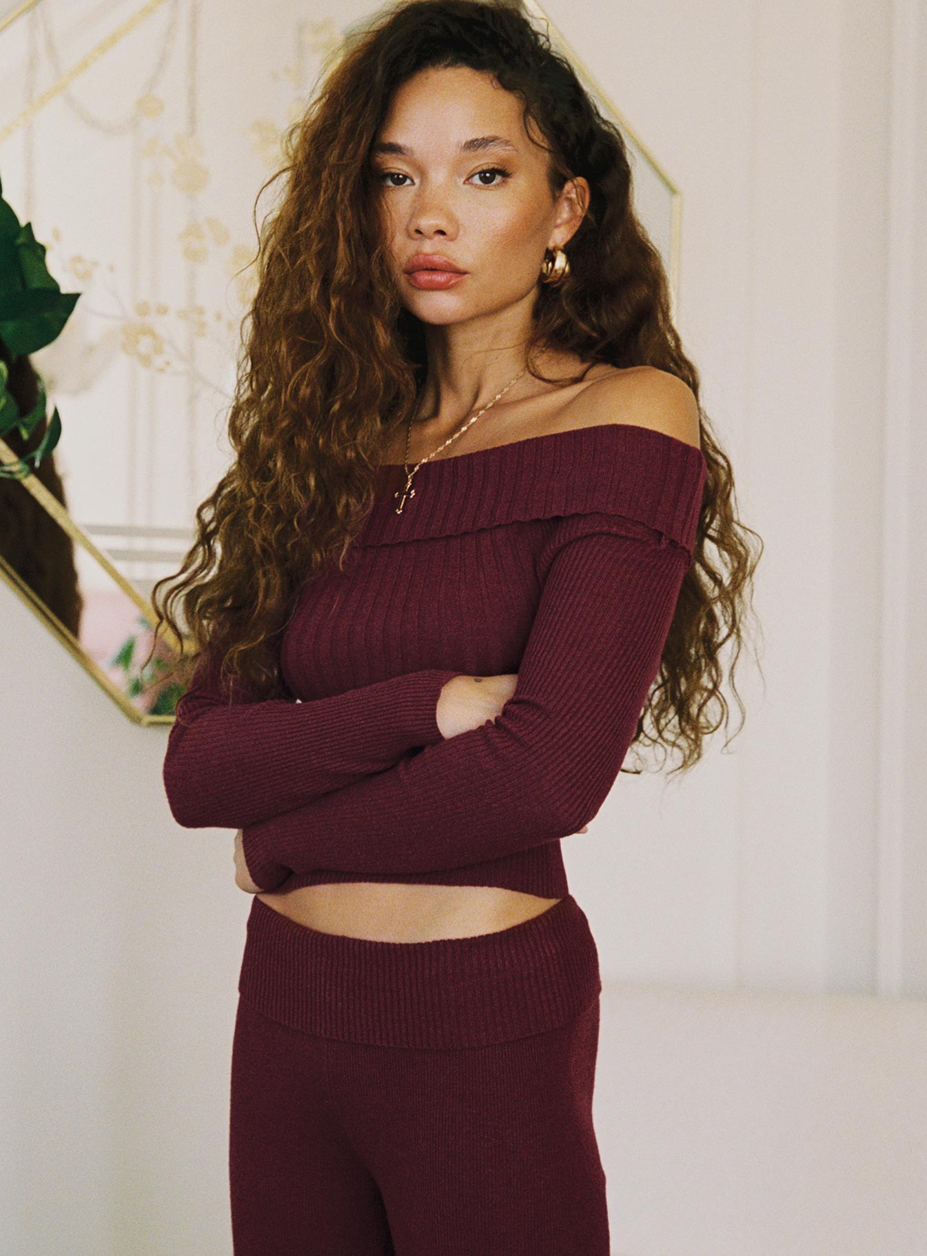 - Off-the-shoulder knit top