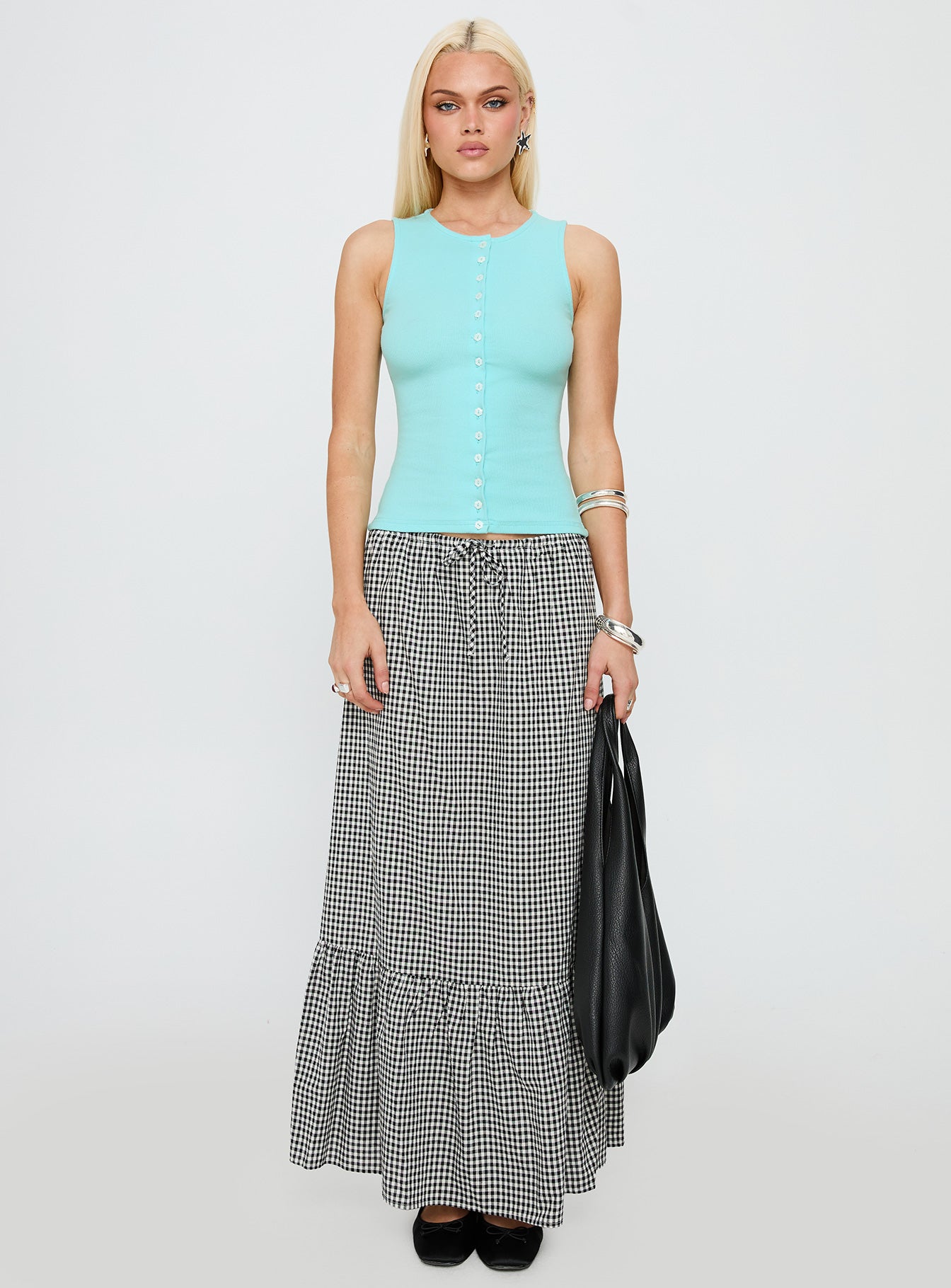 - Sleeveless button-up top
