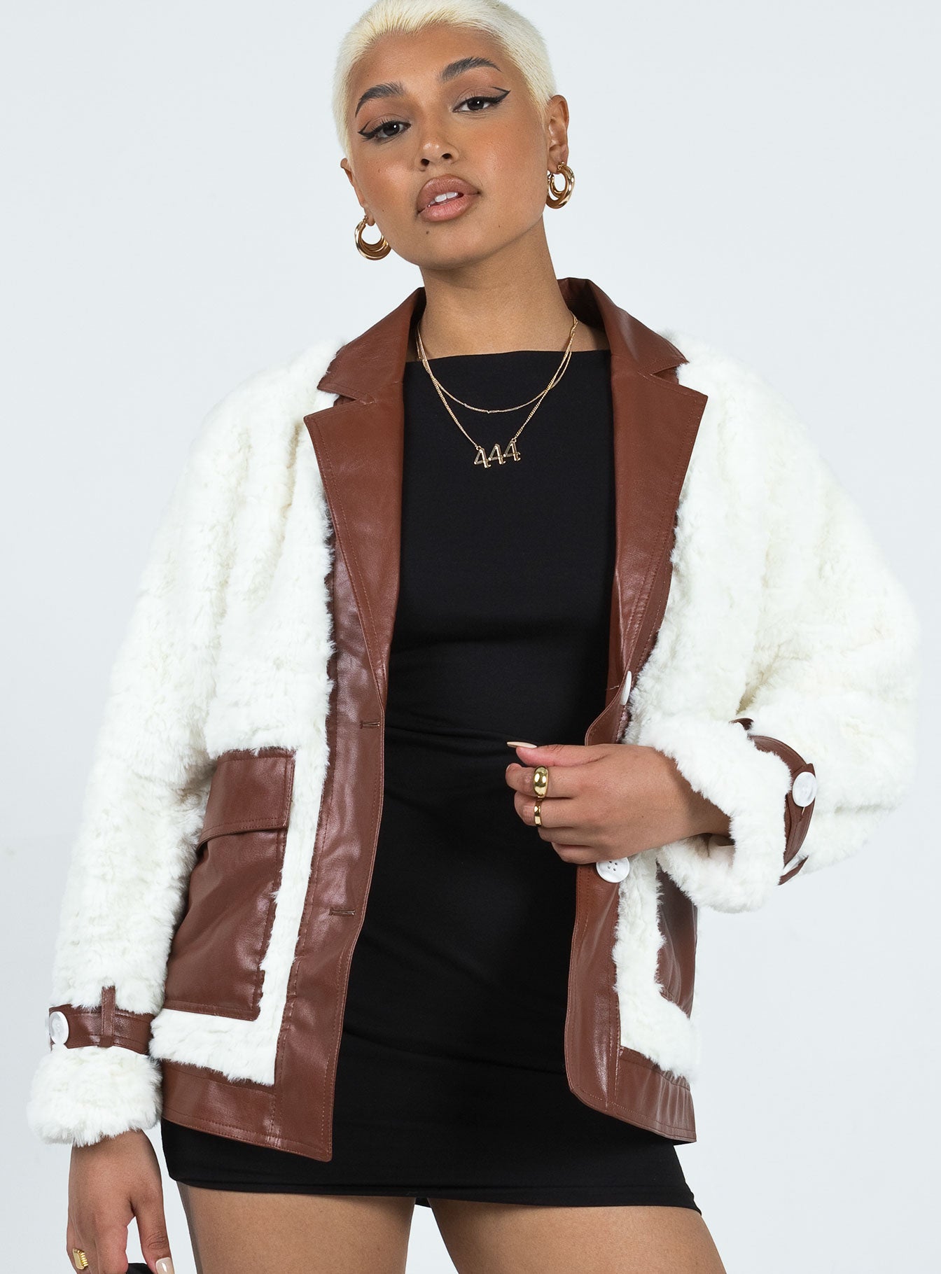 Be the first to review “Tudor PU Faux Fur Jacket White / Brown”