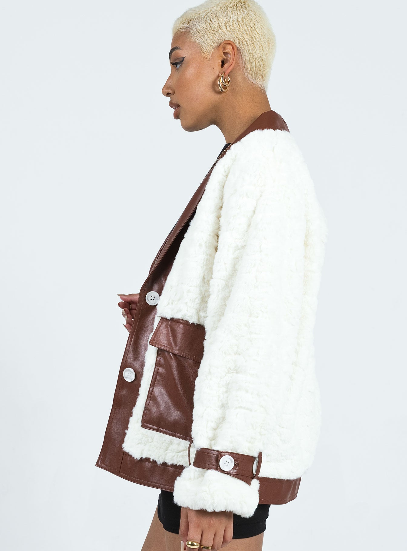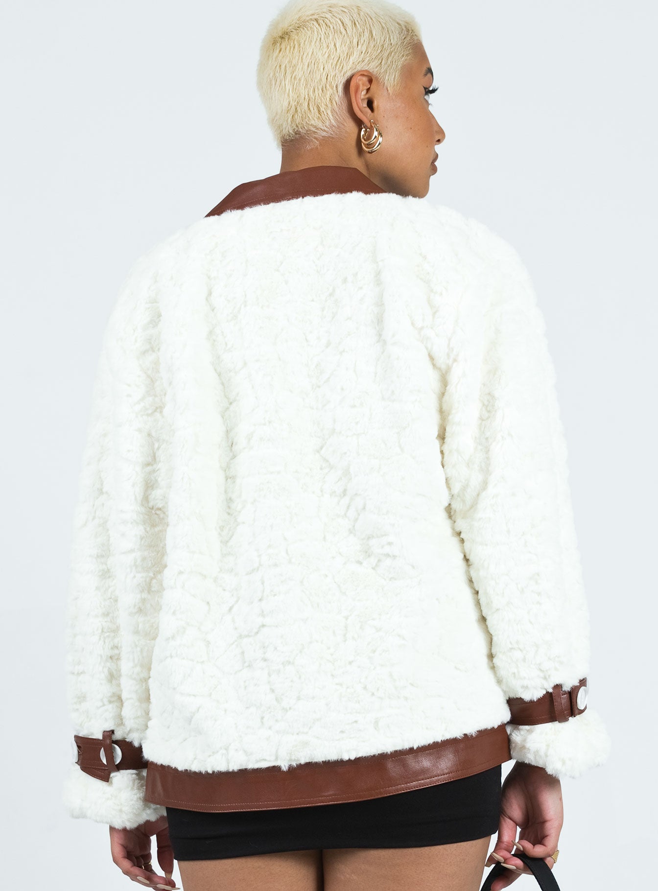 Tudor PU Faux Fur Jacket White / Brown