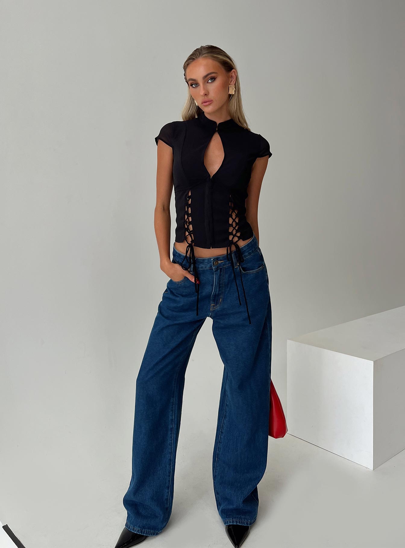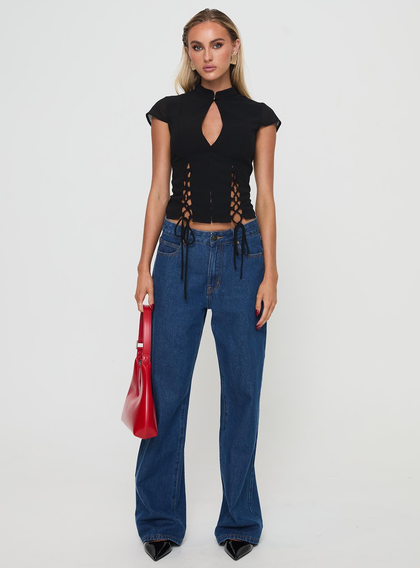 - Sheer material. mandarin collar with button fastening. cap sleeves. four splits at hem front and back with lace-up fastening. cut-out detail at bust. hook & eye fastening down front