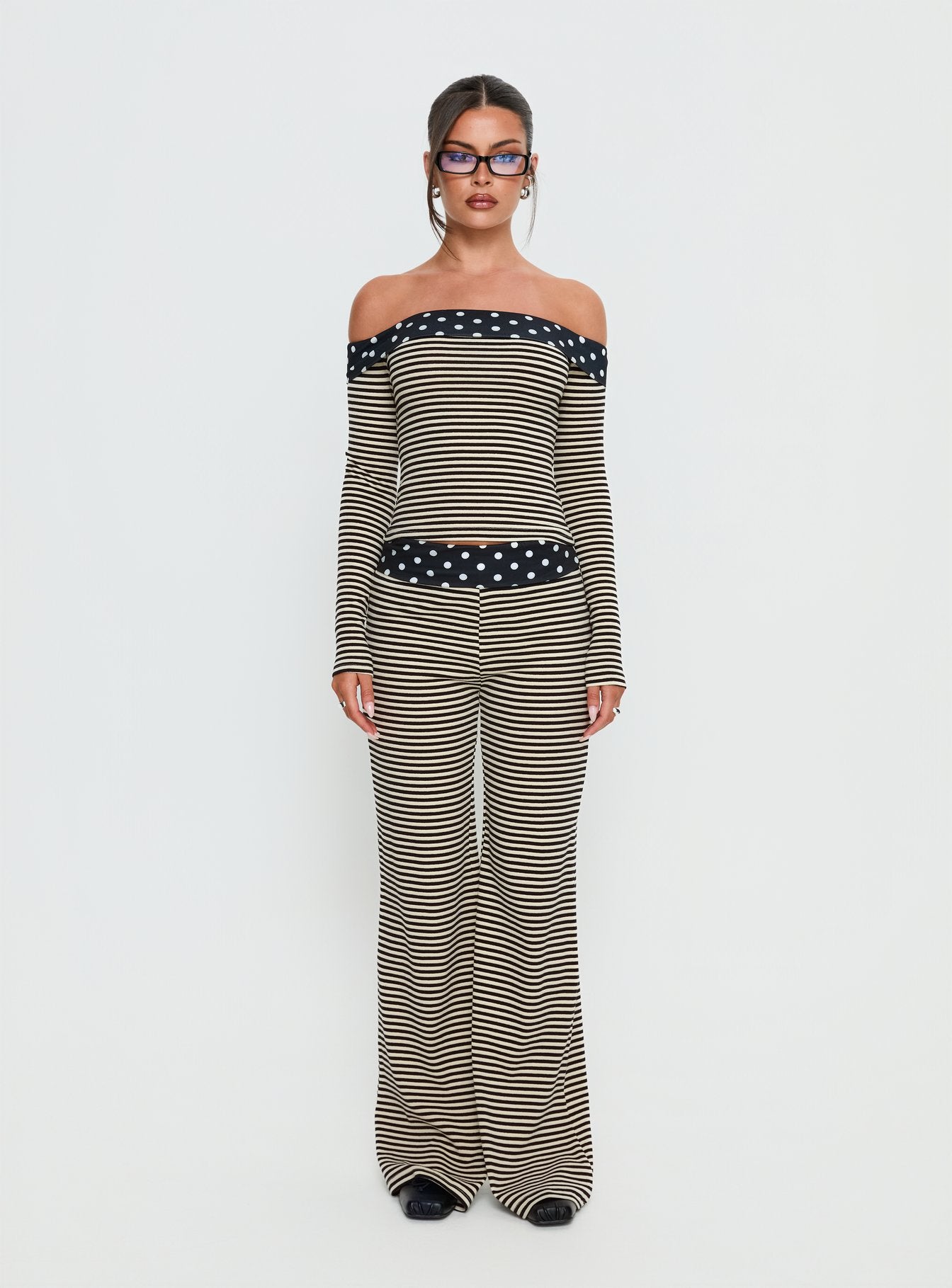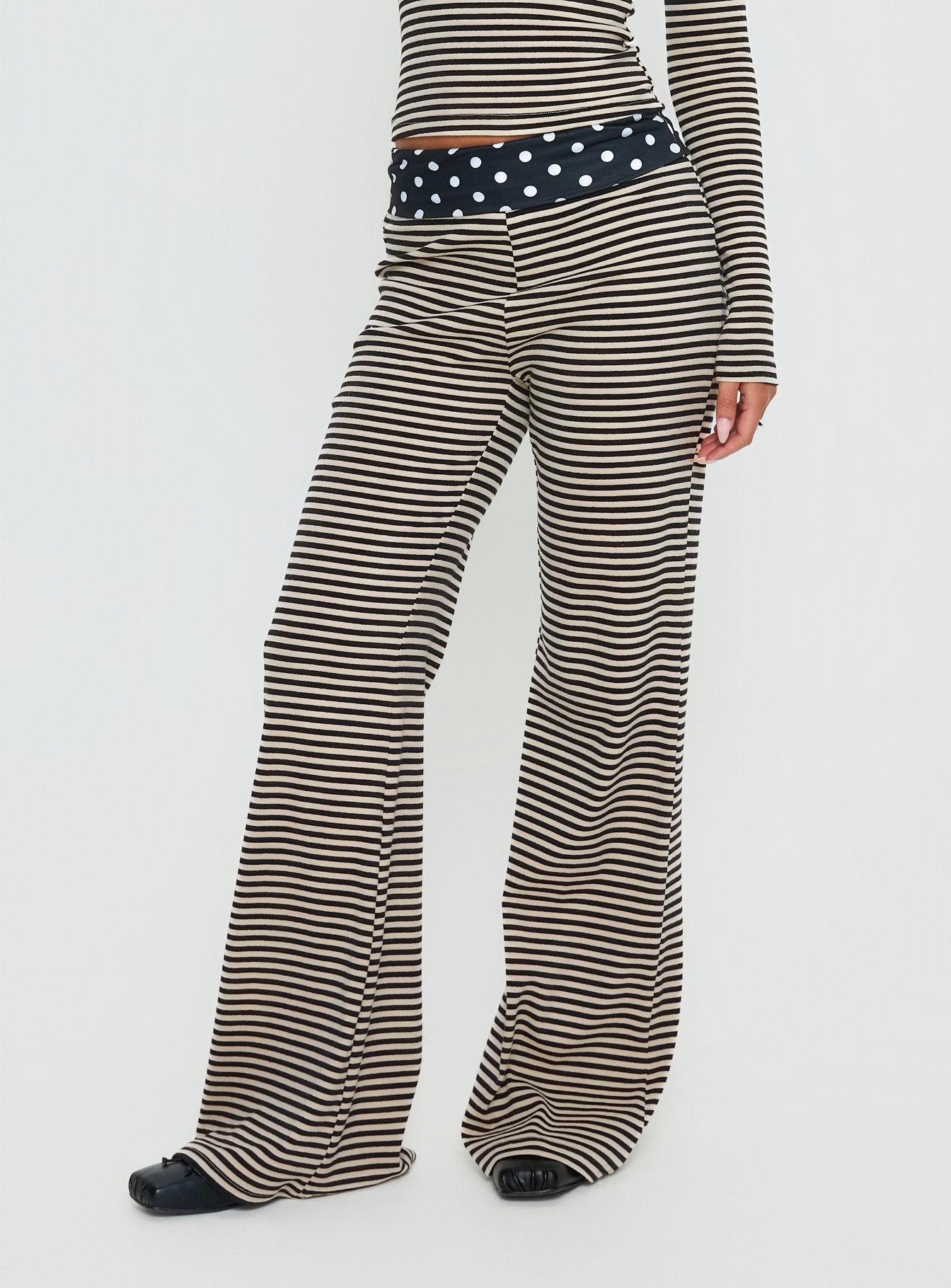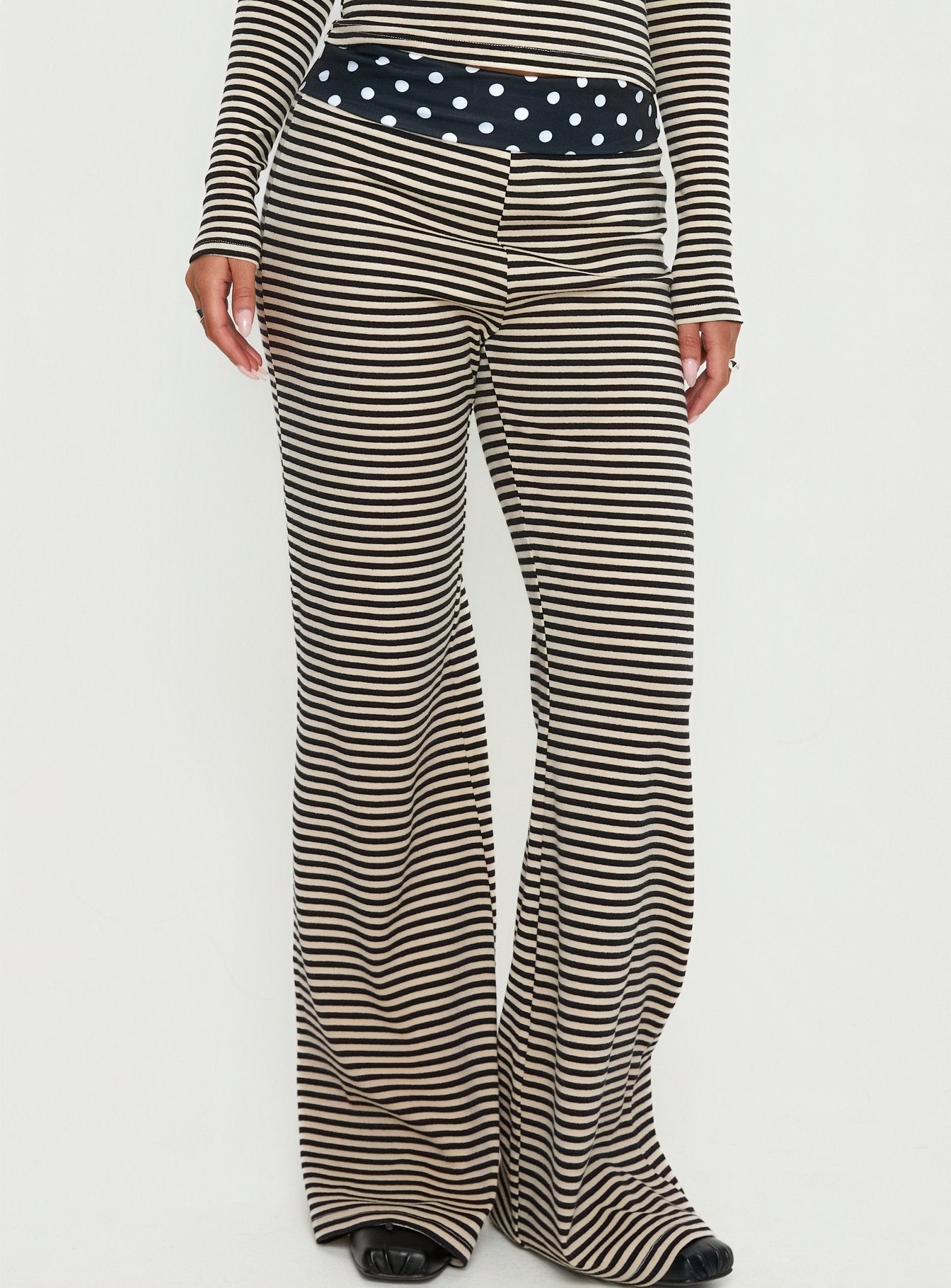 - Pants in multi-print with folded-over & a mid-rise fit?