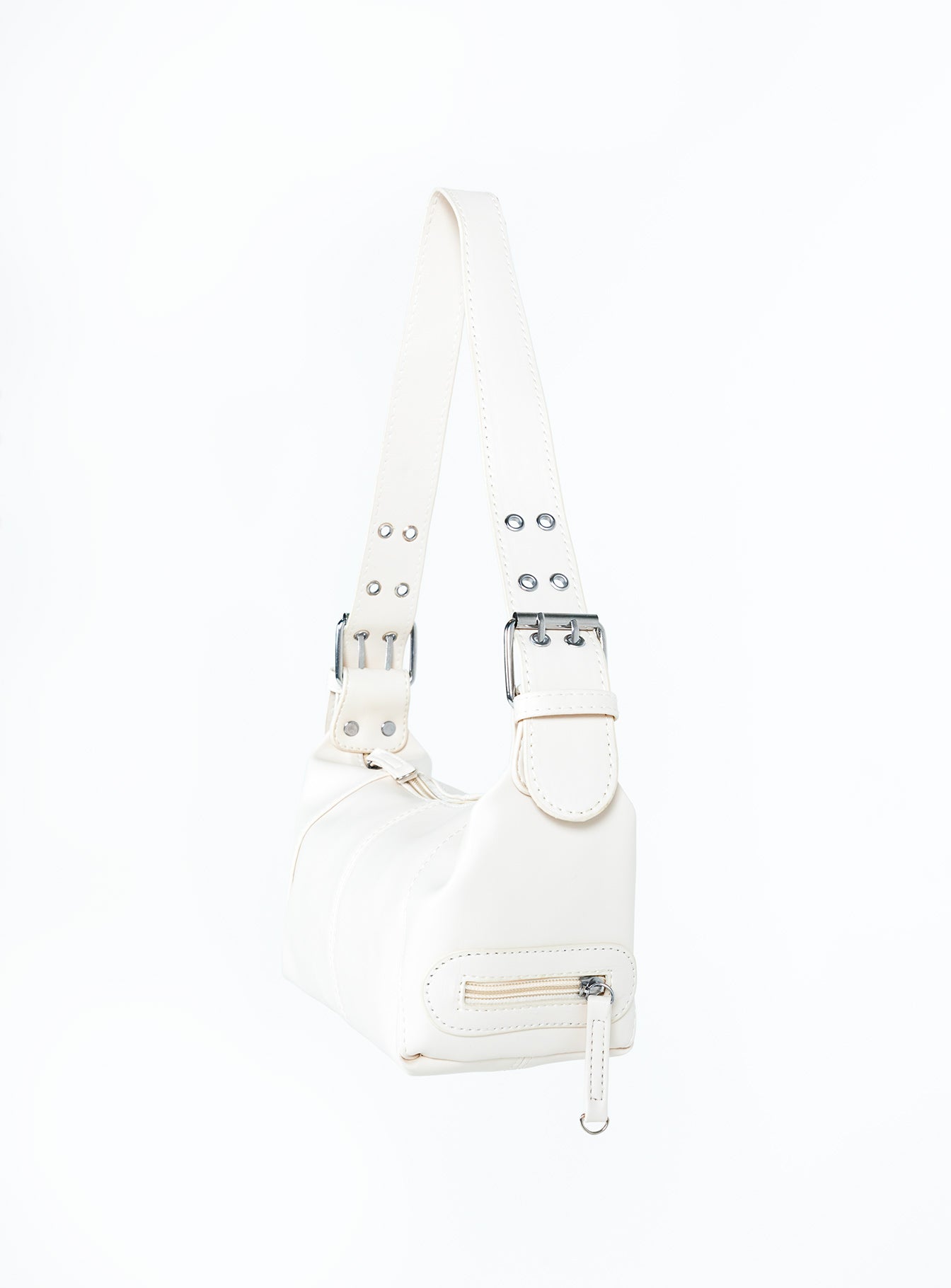 • Removable and adjustable strap. zip fastening and silver-toned hardware